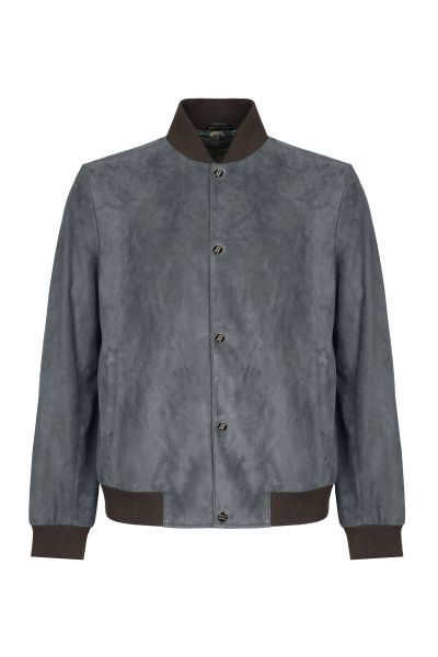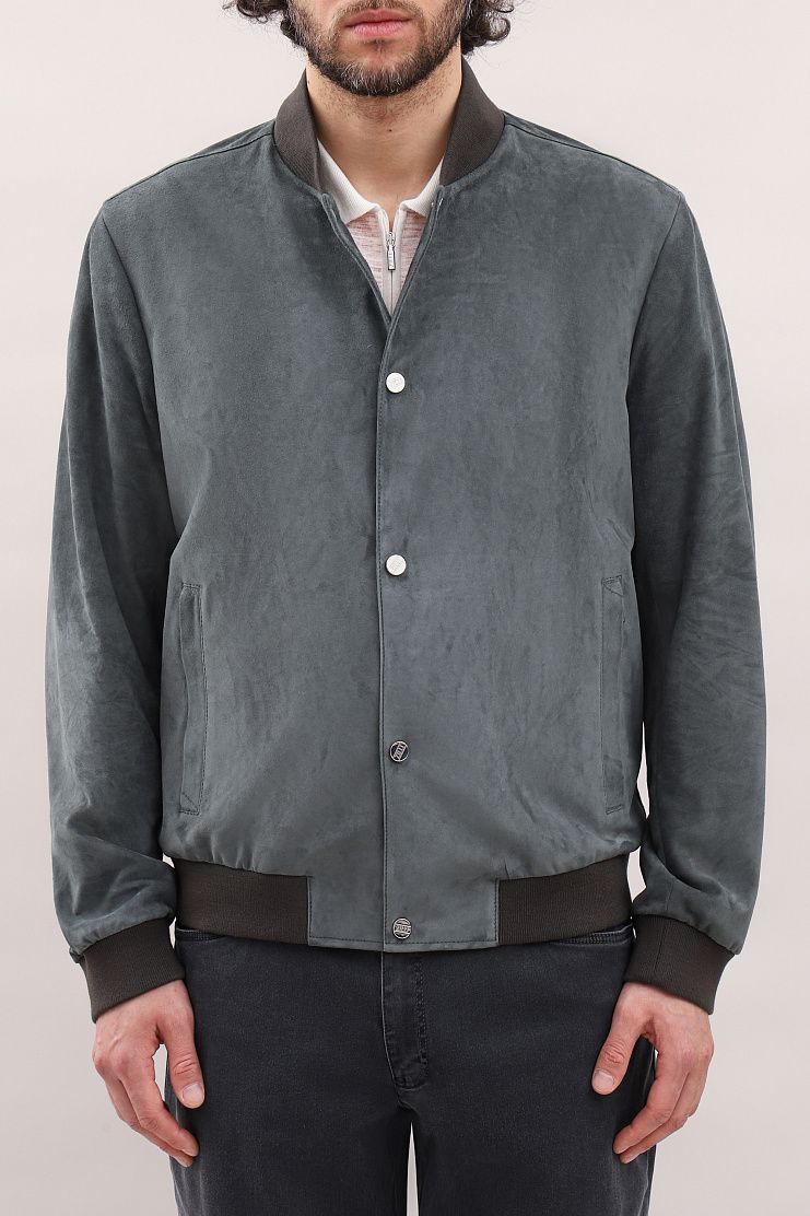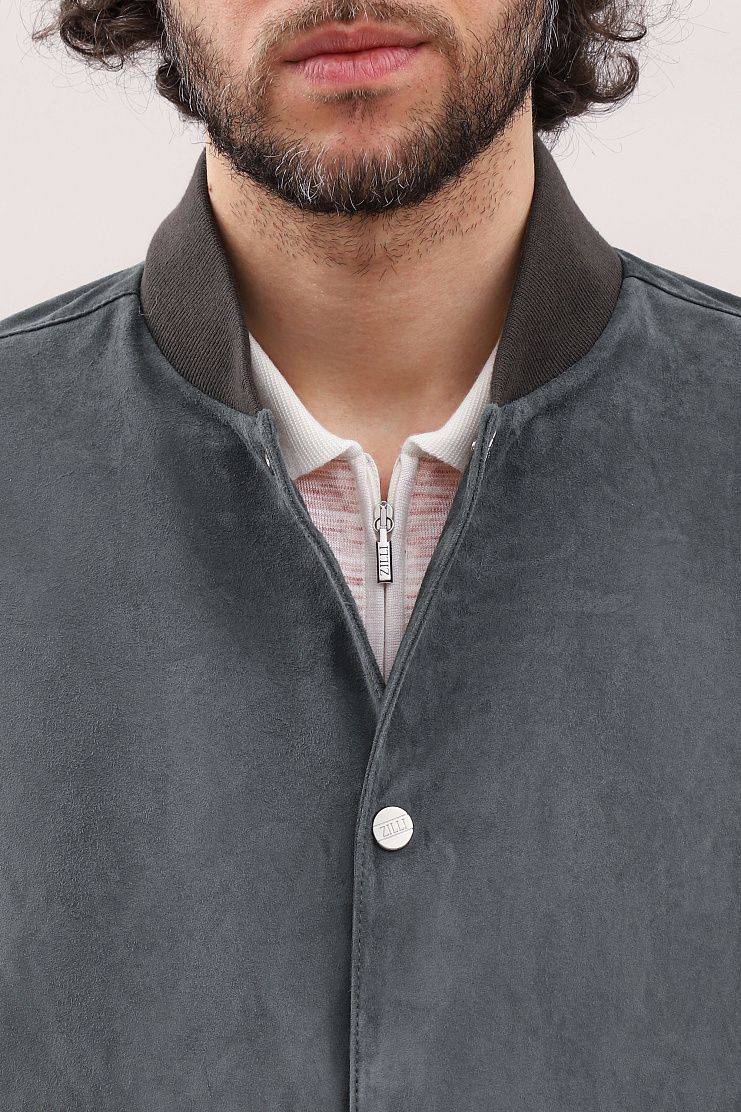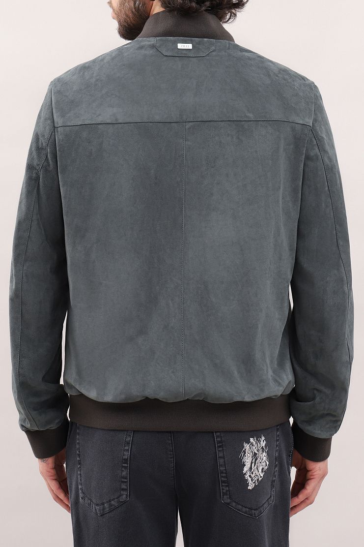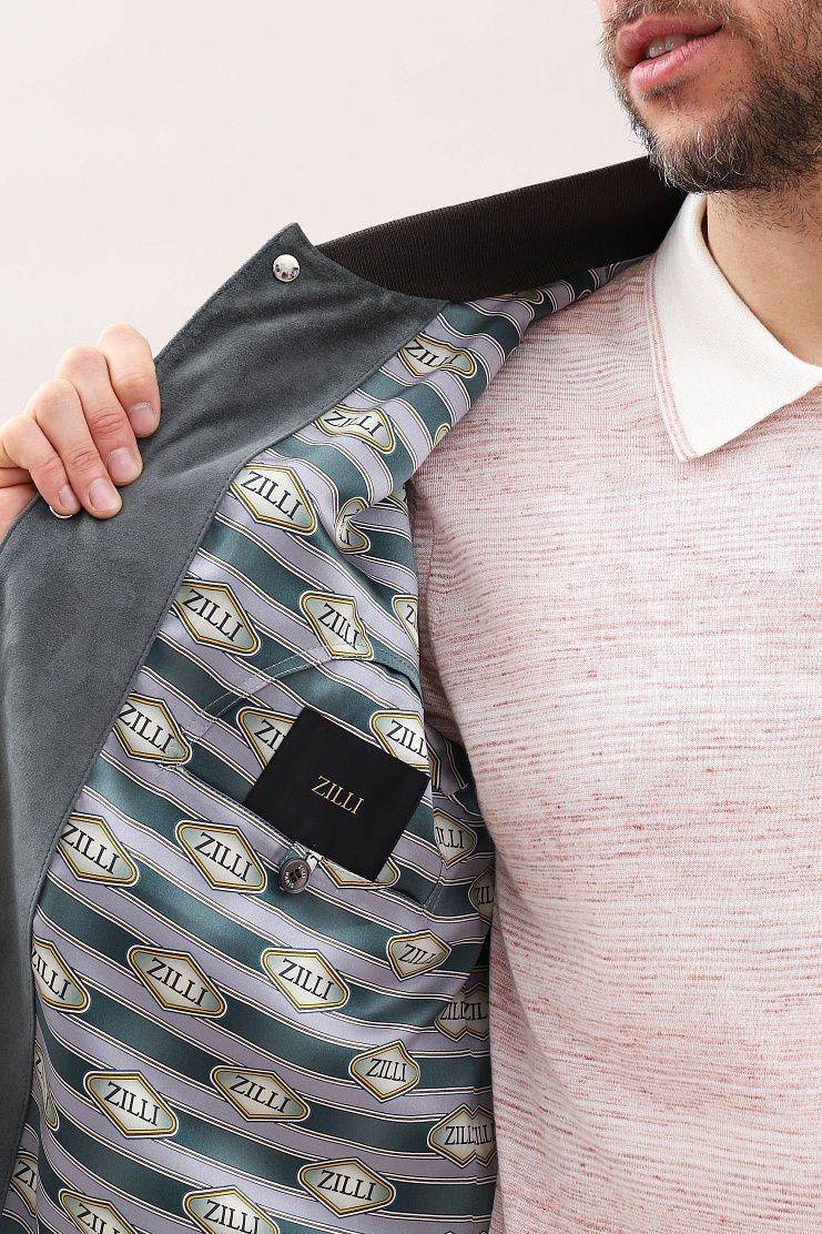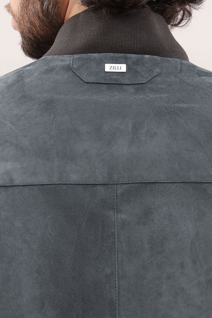 Для пошива куртки-бомбера с воротником-стойкой мастера марки выбрали бархатистую замшу. Модель дополнили брендированной подкладкой, внутренним и боковыми карманами, трикотажной отделкой и застежкой на пуговицы. Сзади разместили миниатюрную металлическую пластину с логотипом Zilli.