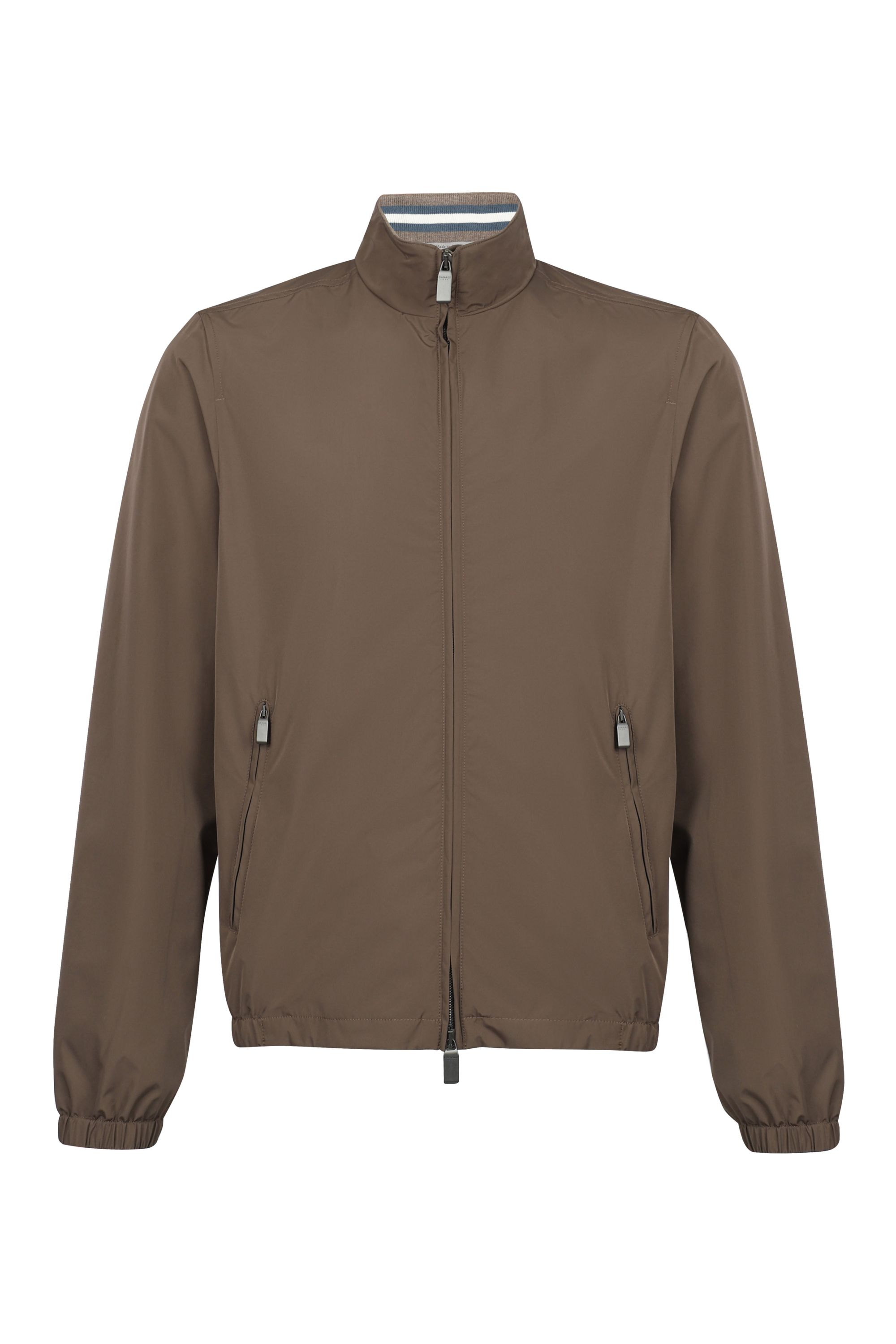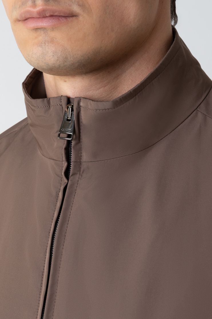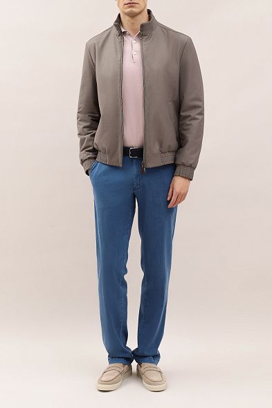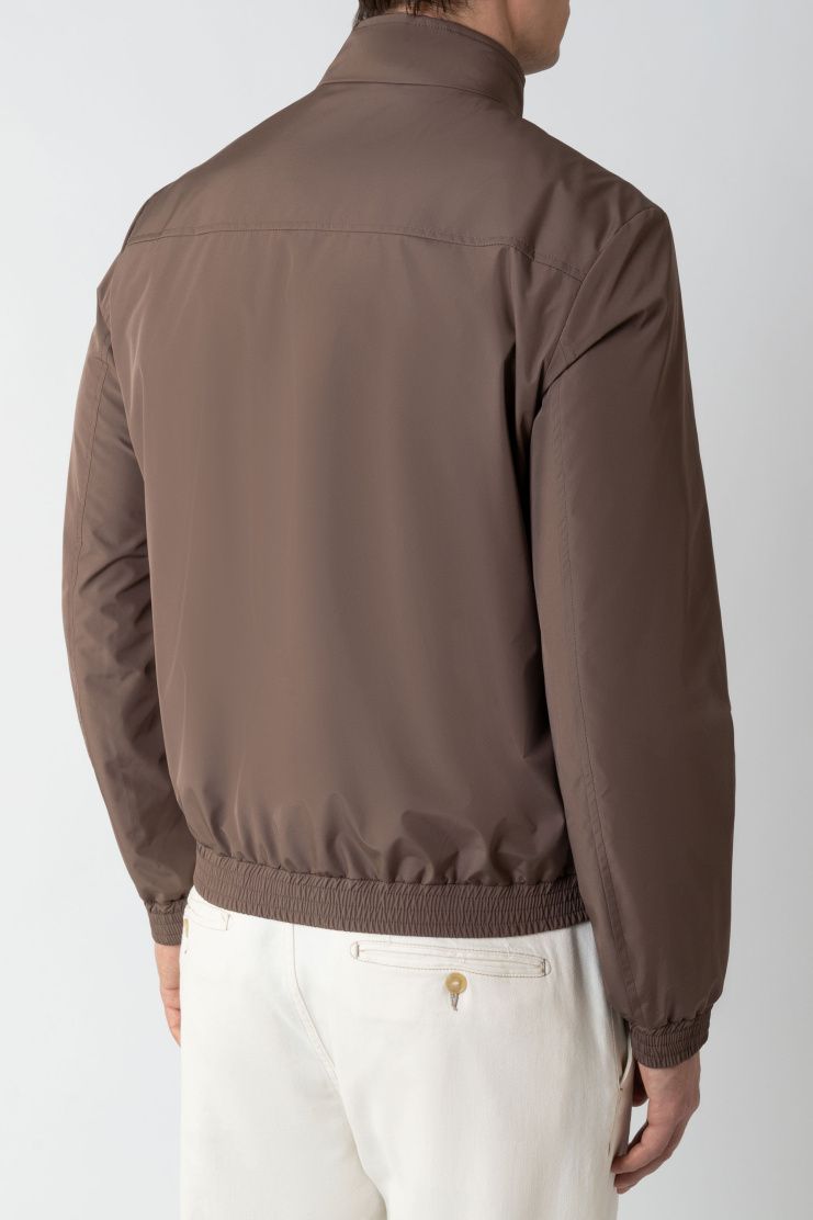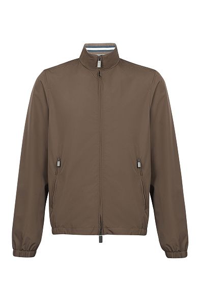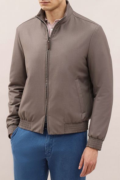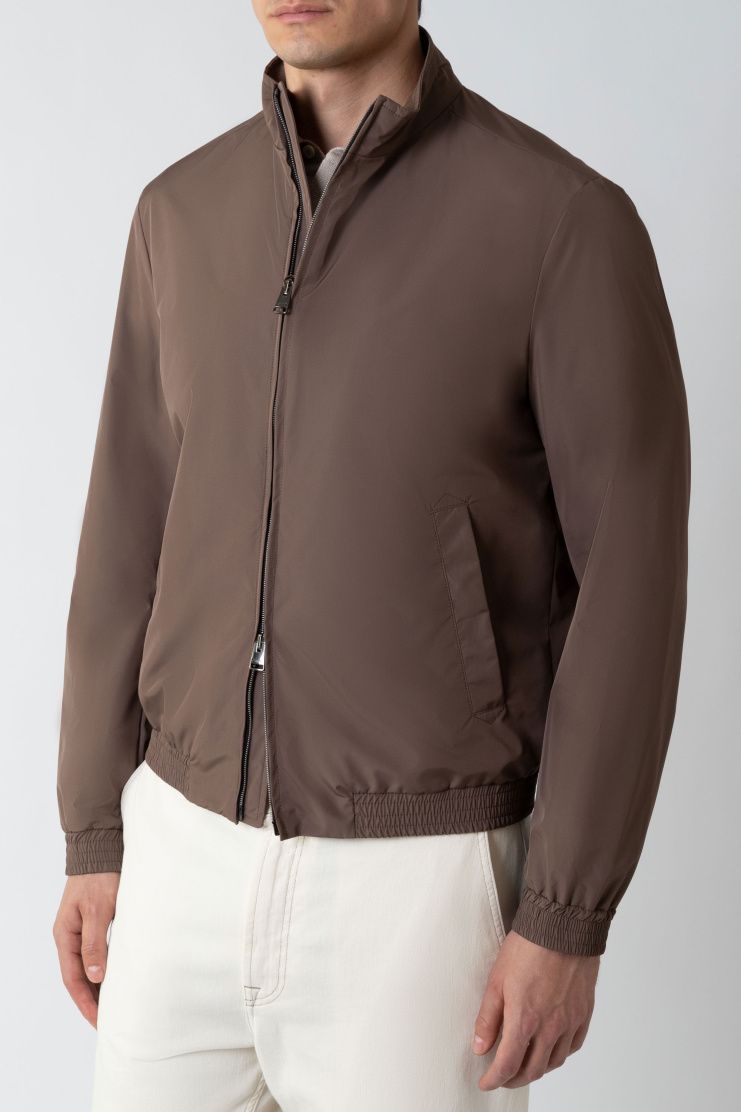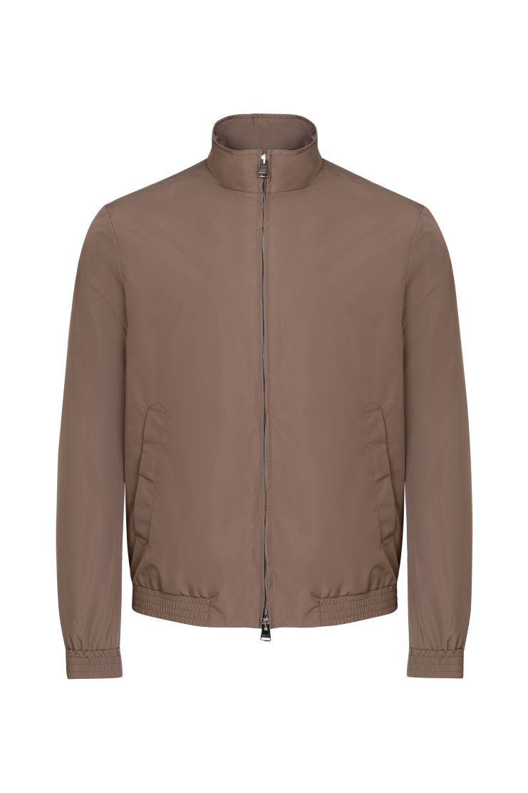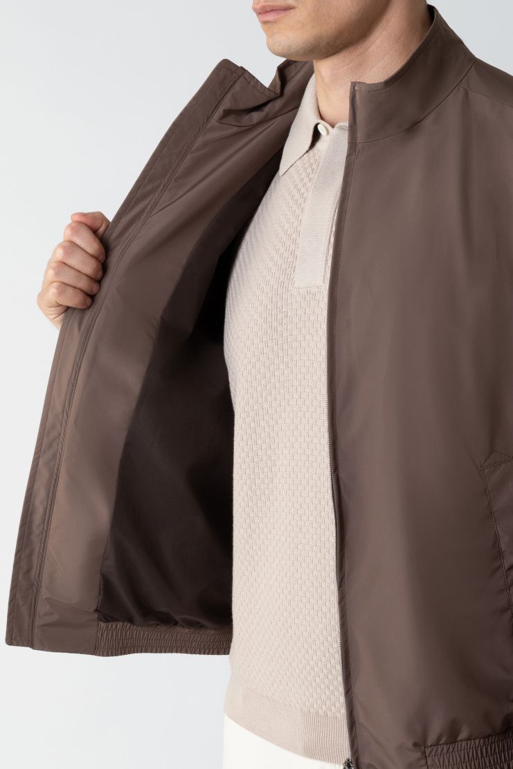 Бомбер с воротником-стойкой сшит из гладкого матового полиэстера. Благодаря эластичным манжетам и поясу куртка комфортно садится по фигуре. Модель дополнили двумя боковыми и одним внутренним карманом. Застегивается на встречную молнию.
