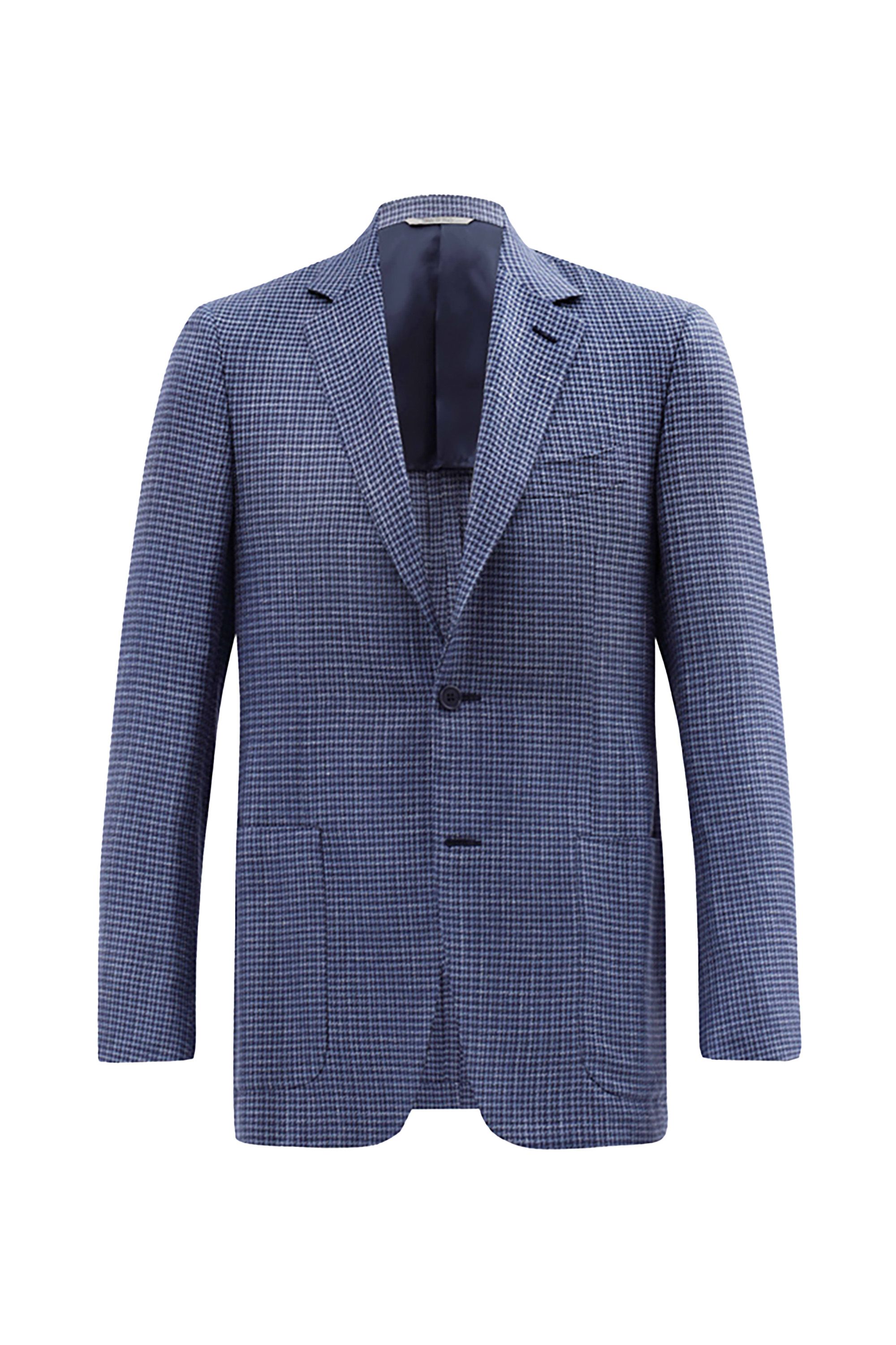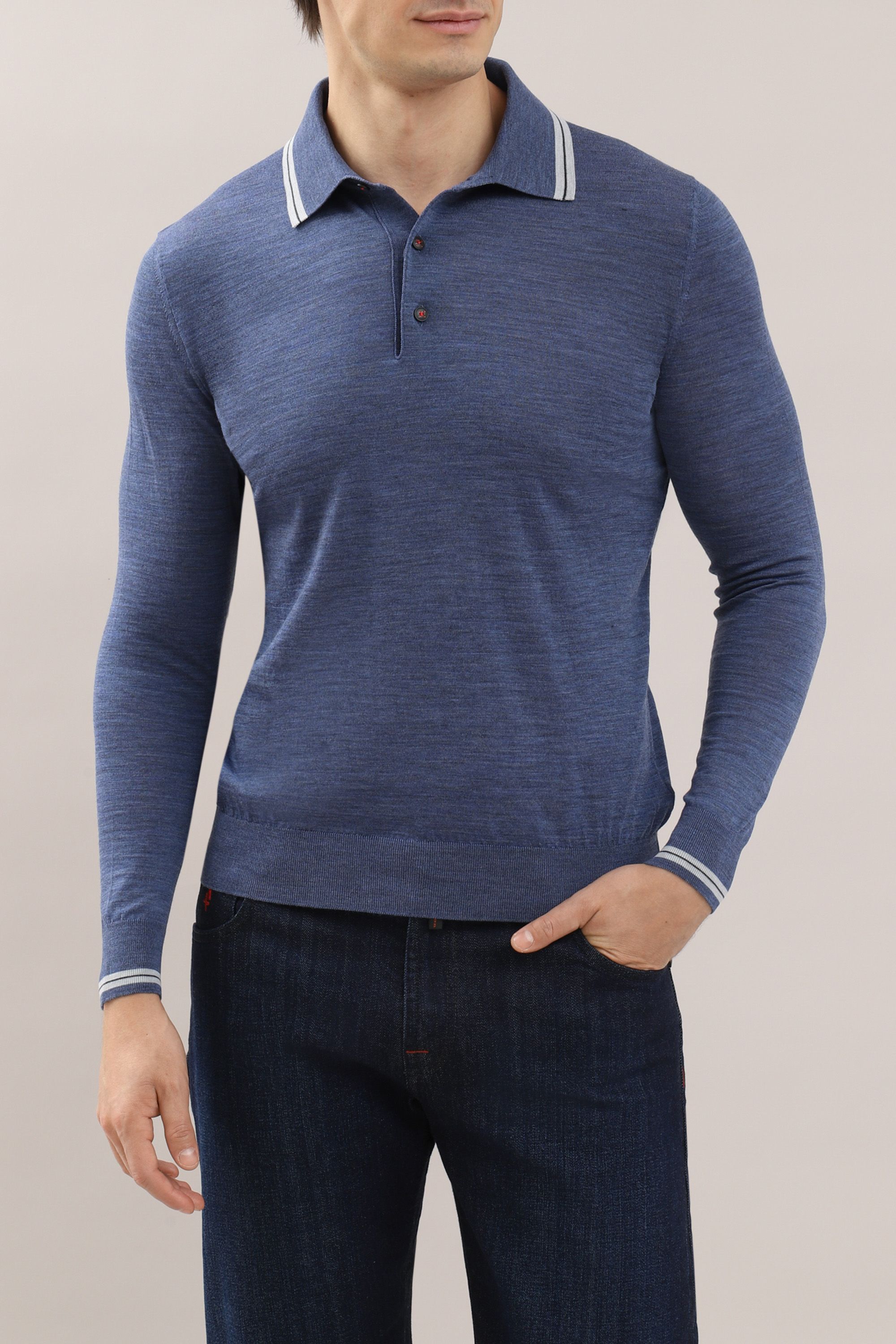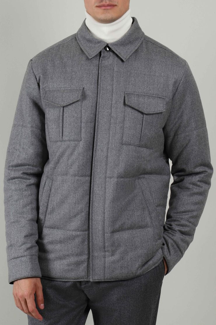 Куртка из меланжевой ткани синего цвета прекрасно соединила в себе повседневную практичность и элегантный стиль. Модель свободного кроя с отложным воротником, нагрудными и боковыми карманами и застежкой на кнопки.