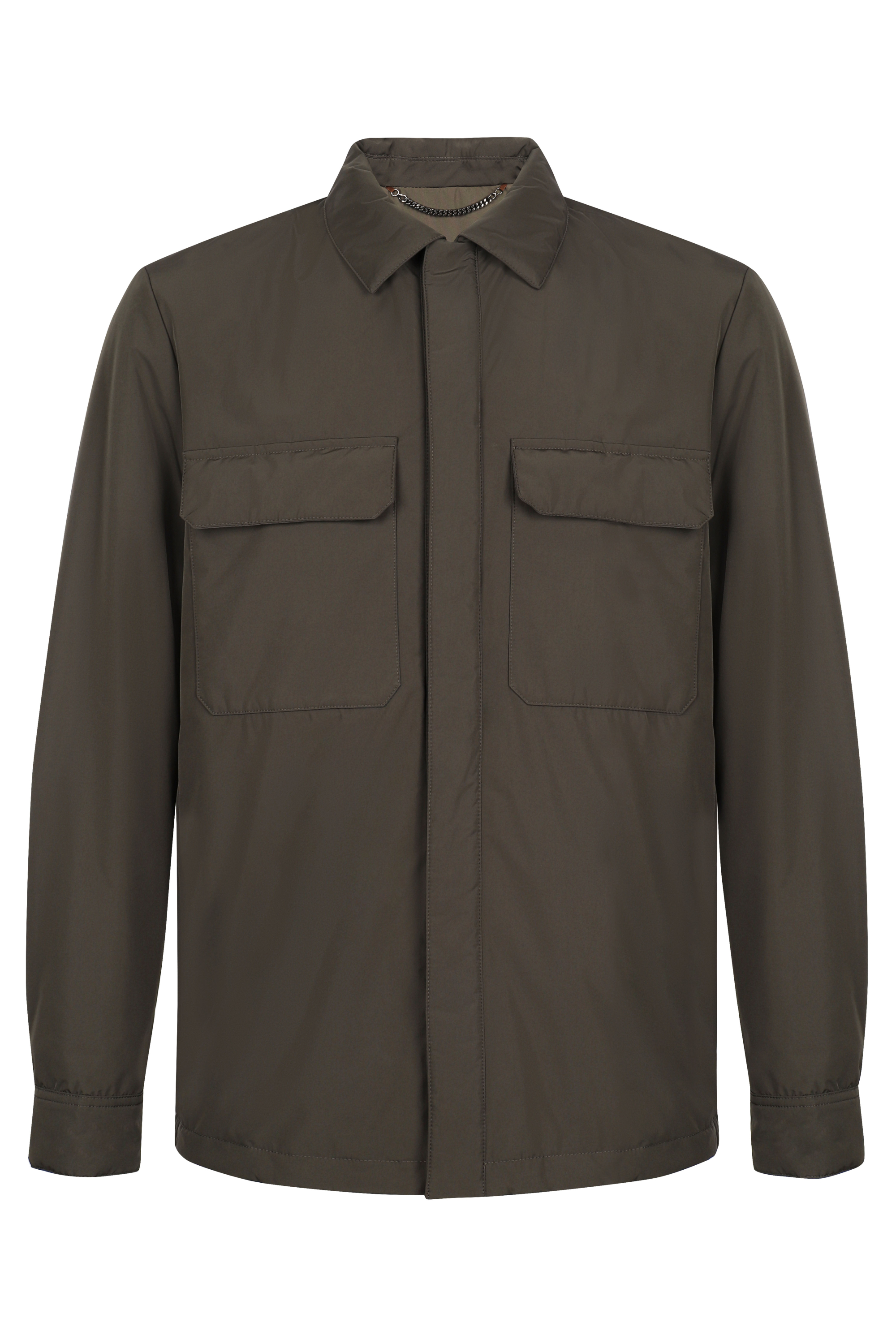 Стеганую куртку-рубашку сшили из прочного полиамида с жаккардовым узором Dior Oblique. Модель с отложным воротником и спущенной линией плеча дополнена внутренним и тремя внешними карманами. Застегивается на брендированные кнопки.