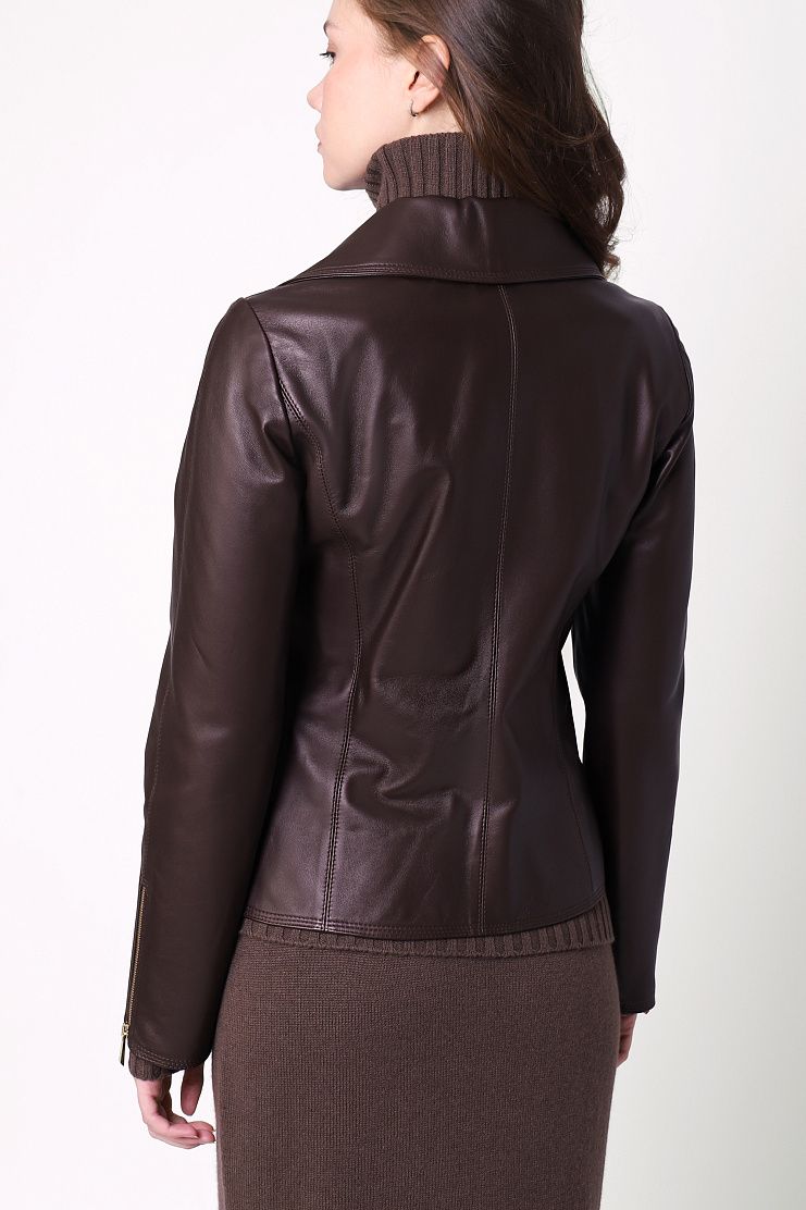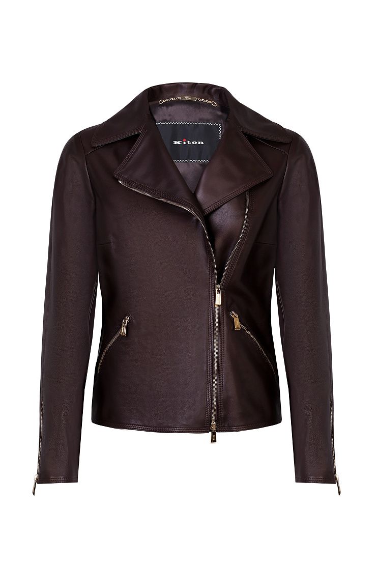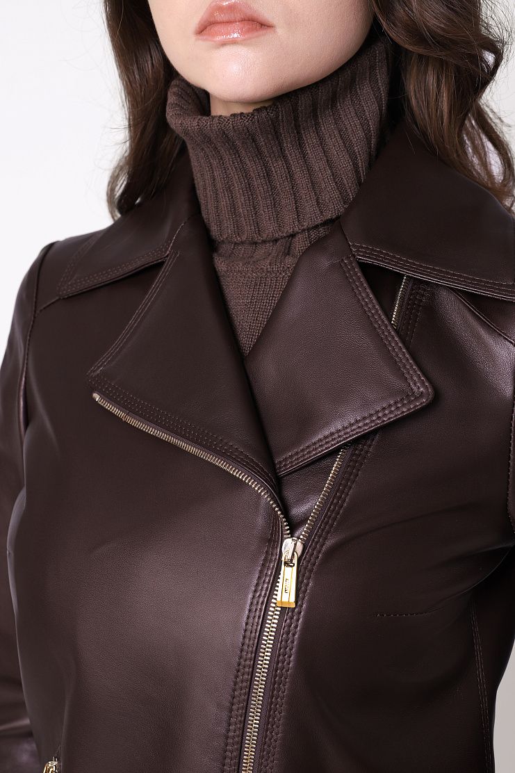 Кожаная куртка приталенного силуэта гармонично впишется в повседневный гардероб. Модель с широкими лацканами дополнена асимметричной застежкой на молнию, боковыми карманами и молниями на рукавах.