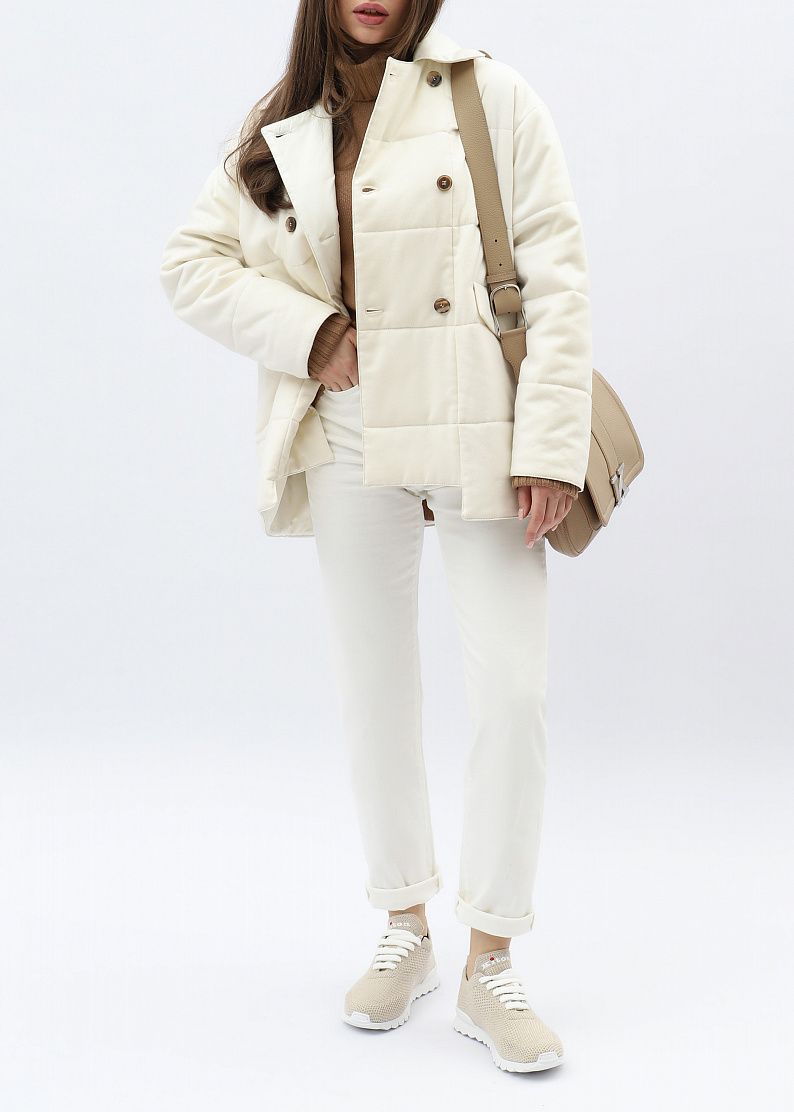 Невесомая кашемировая куртка подойдет для создания элегантных повседневных образов. Наполнитель-гусиный пух: 100%.