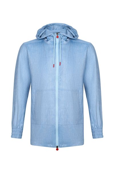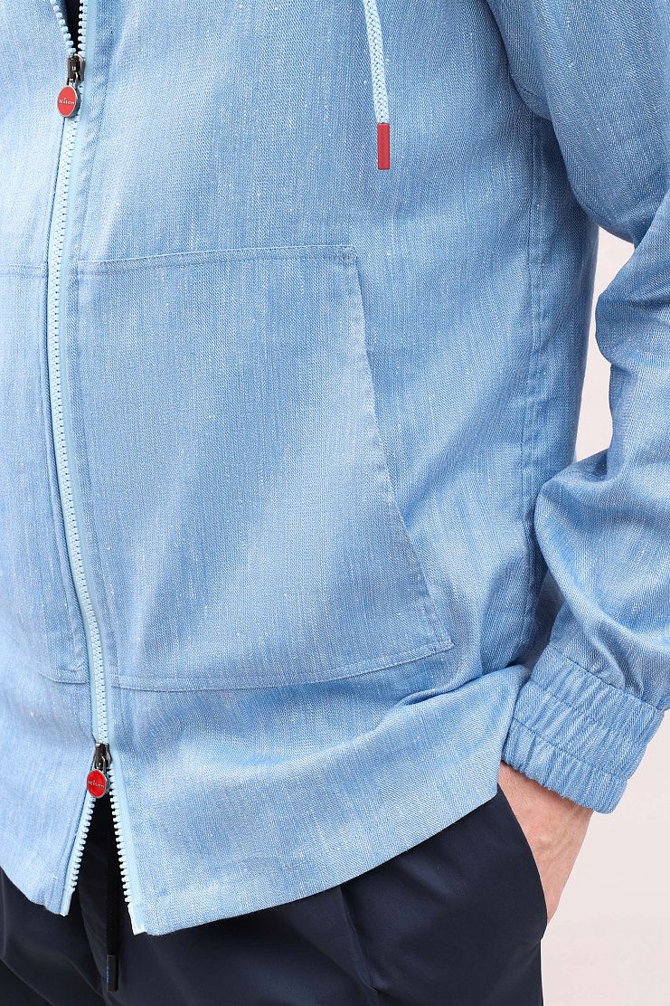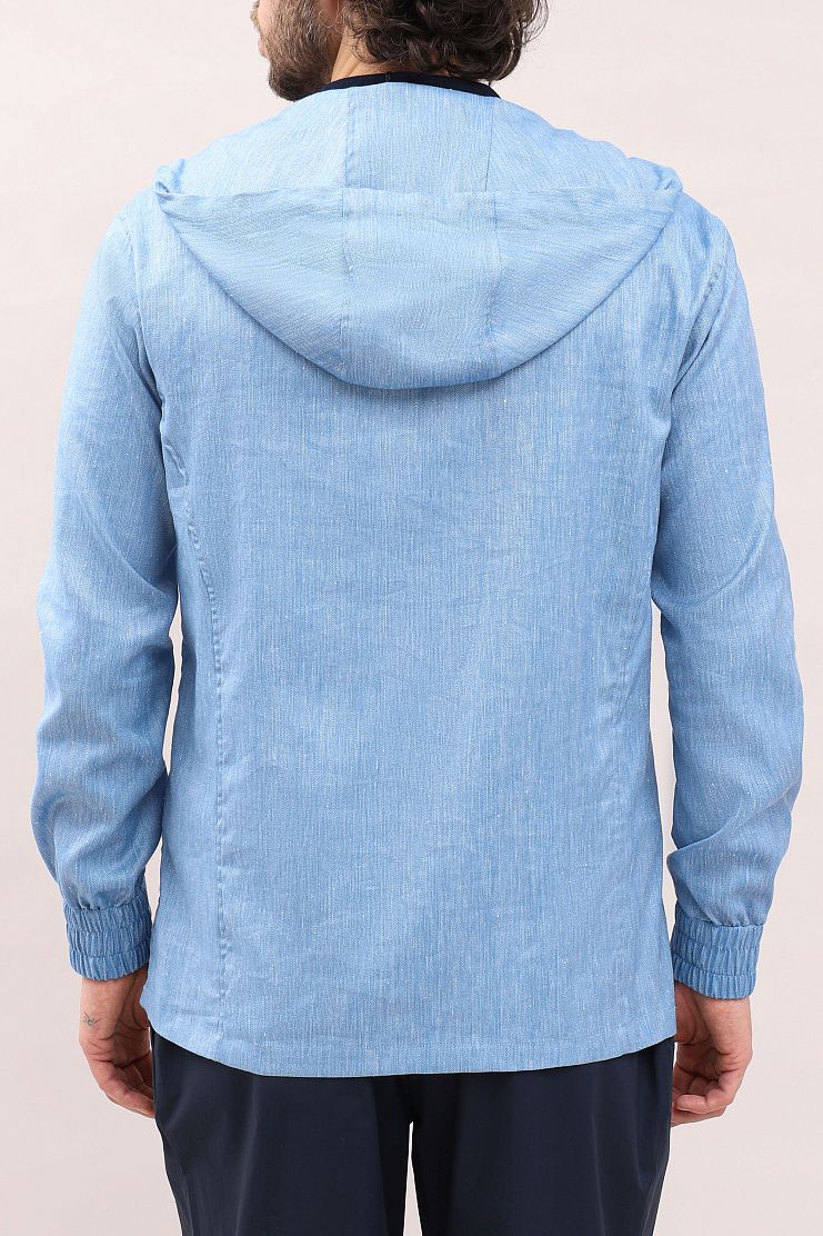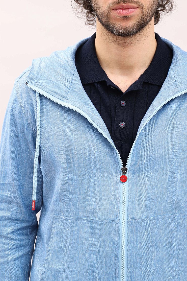 Куртка голубого цвета, по дизайну напоминающая джинсовую рубашку, отлично подойдет для уличного стиля одежды. Модель свободного кроя имеет капюшон, карман-кенгуру и застежку на молнии с культовой красной фурнитурой.