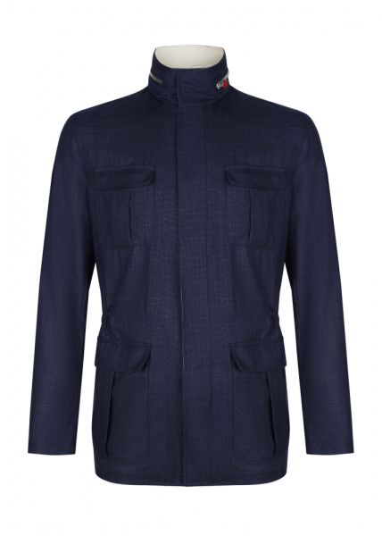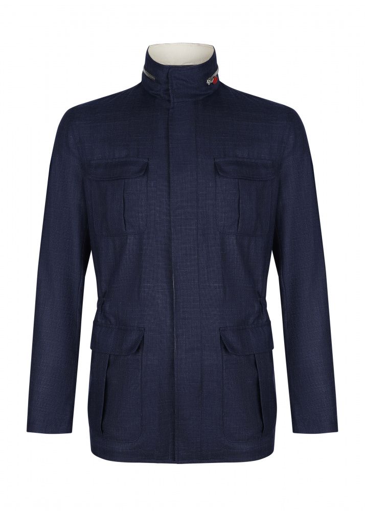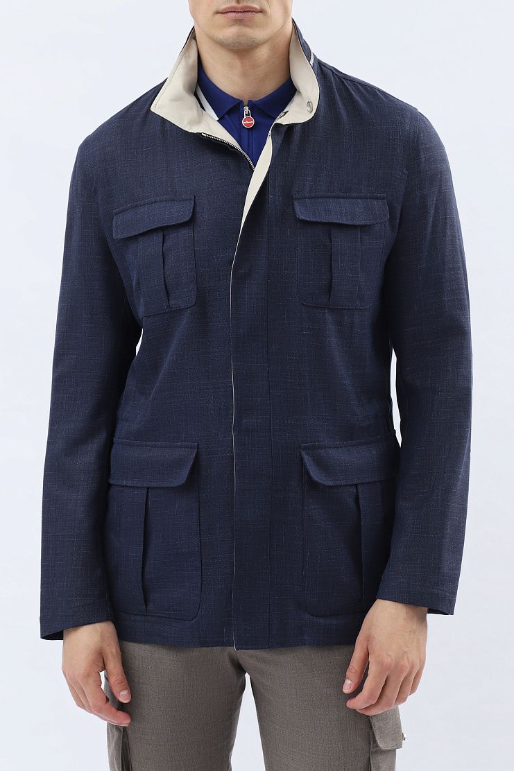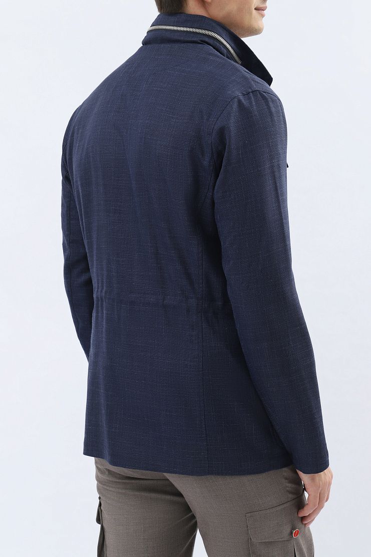 Куртка из меланжевой ткани с воротником-стойкой, скрытой застежкой на молнию и кнопки и накладными карманами. Модель прямого кроя имеет внутренний пояс на кулиске.