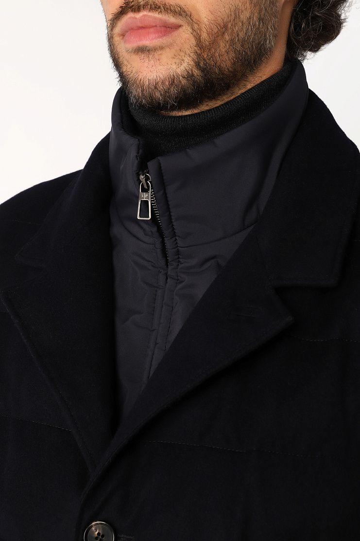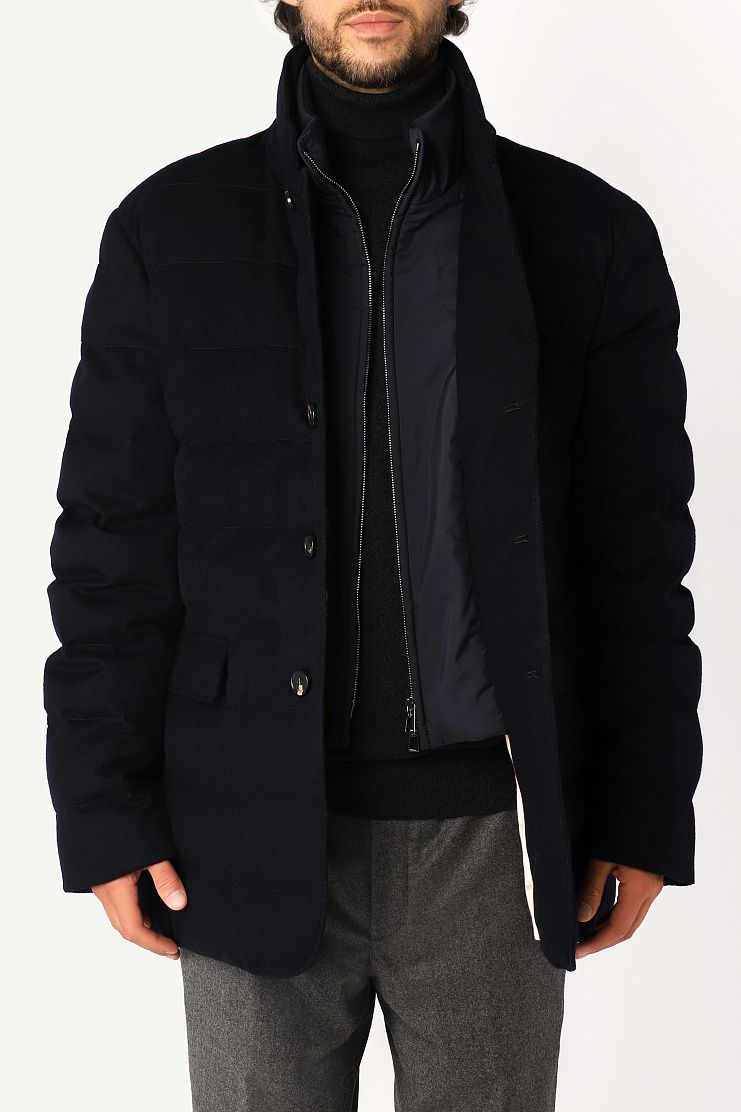 Куртка выполнена из мягкого кашемира. Материал обработан по технологии Storm System®, защищающей в непогоду. Для дополнительной защиты от ветра и холода изделие дополнили внутренней вставкой на молнии с высоким воротником. Наполнитель равномерно распределен внутри благодаря стежке.
