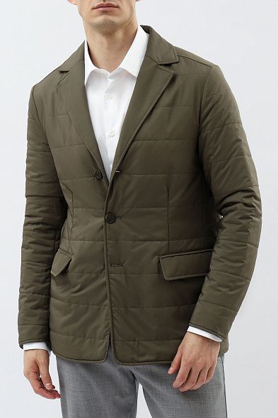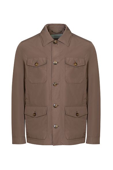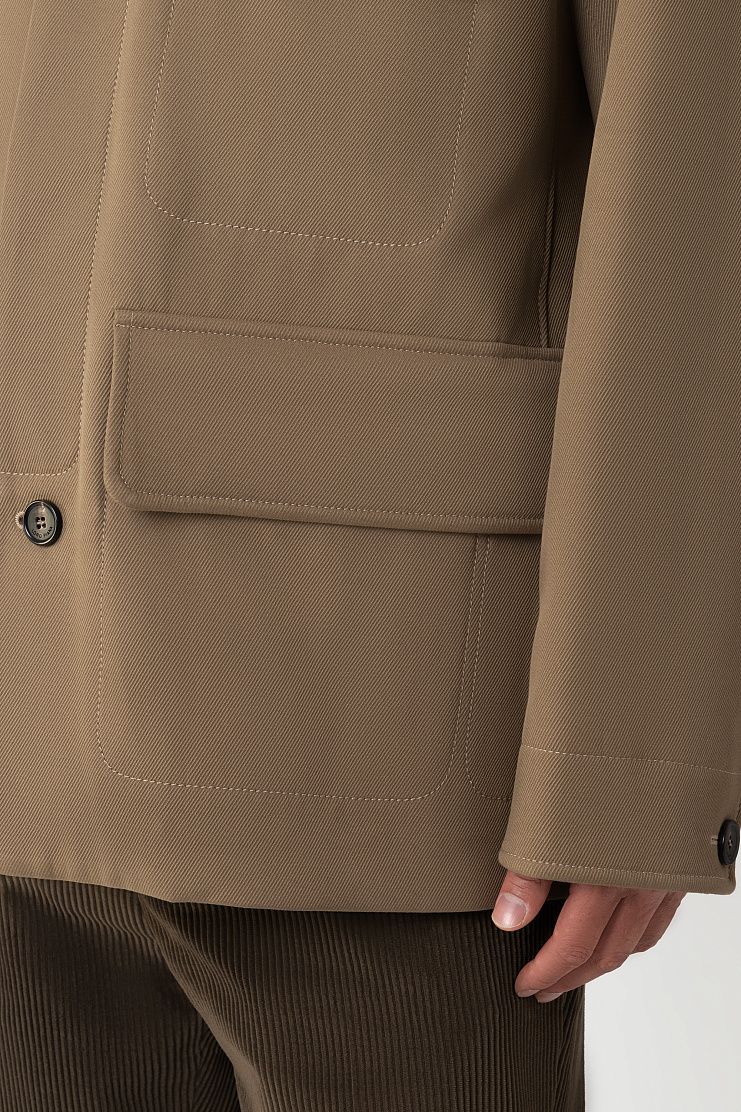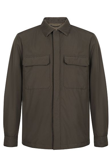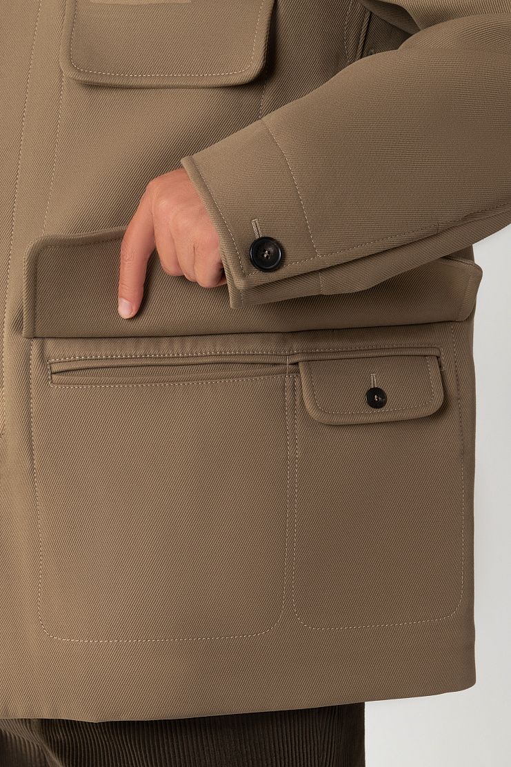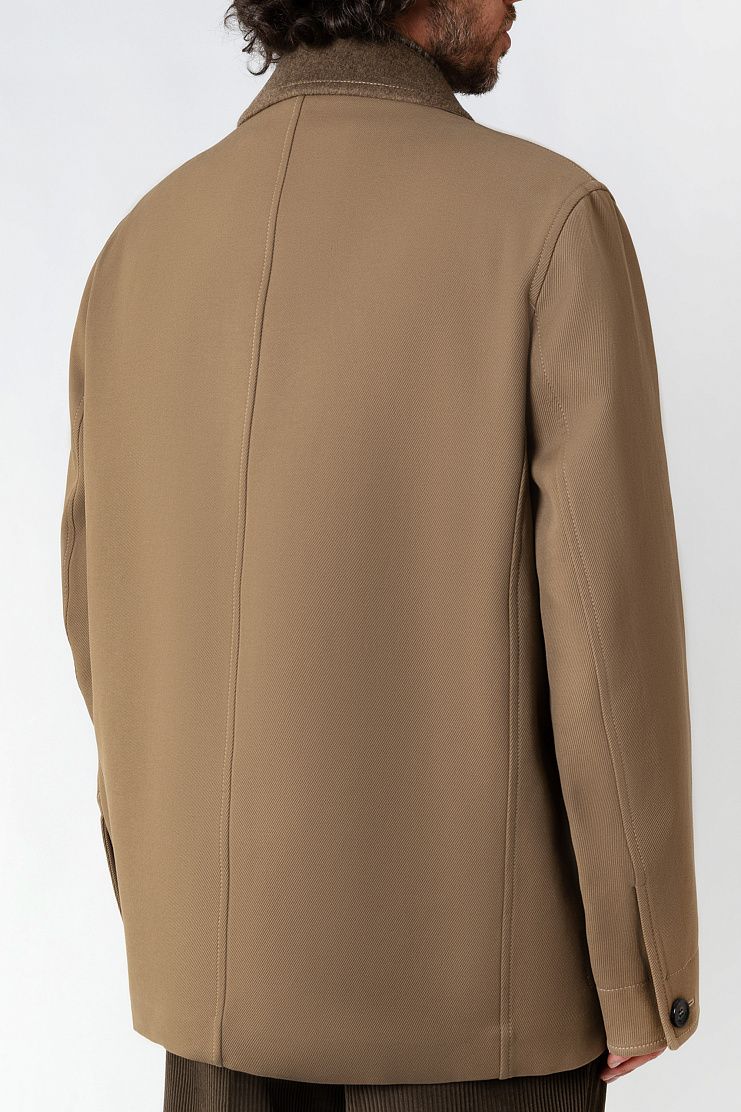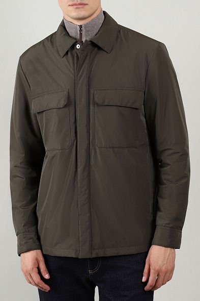 Куртку свободного кроя с крупными прорезными карманами изготовили из плотного хлопка, дополнив отложным воротником из шерсти. Модель с застежкой на пуговицы отлично защитит от холода и ветра, особенно в сочетании с нижним утепляющим слоем.