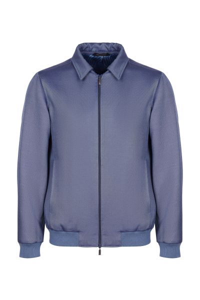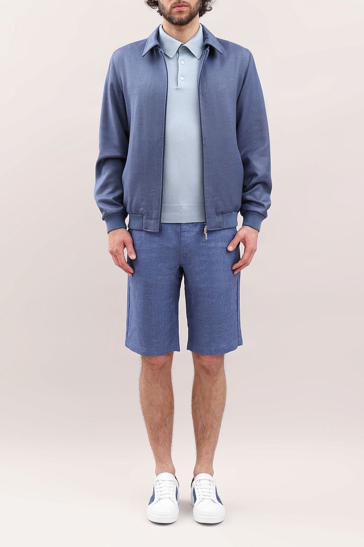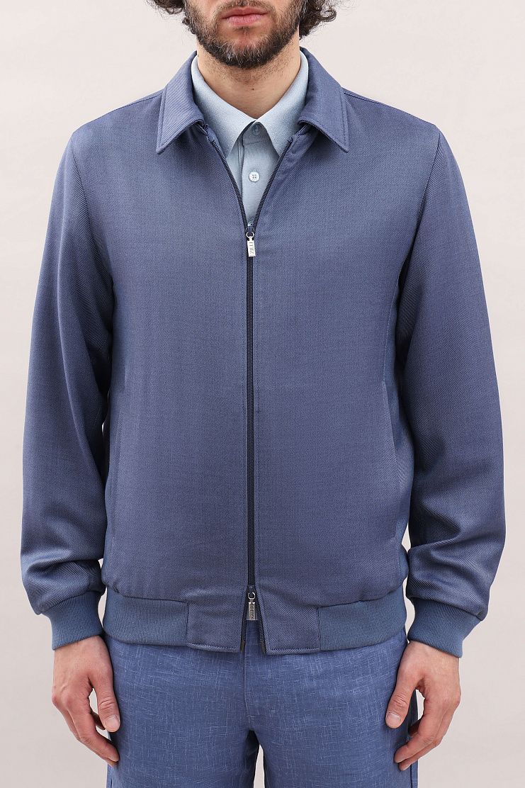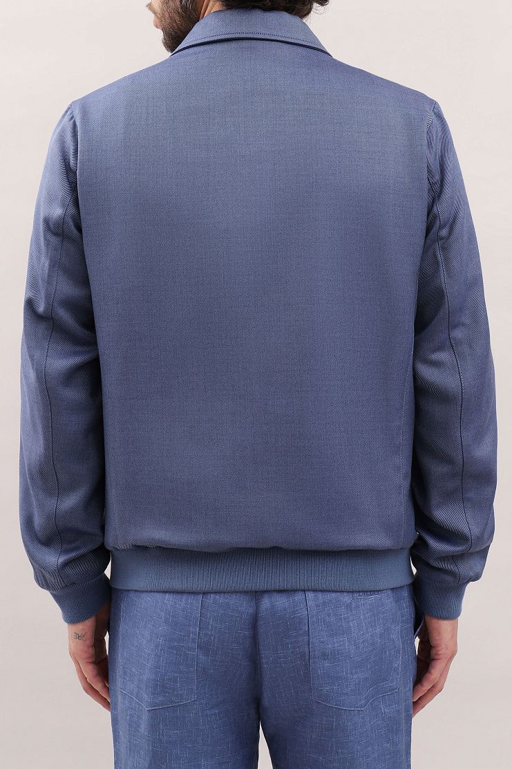 Бомбер с отложным воротником сшили из гладкой ткани на основе кашемира и дополнили подкладом из шелка. Модель с боковыми карманами и трикотажной отделкой на поясе и манжетах застегивается на встречную молнию.