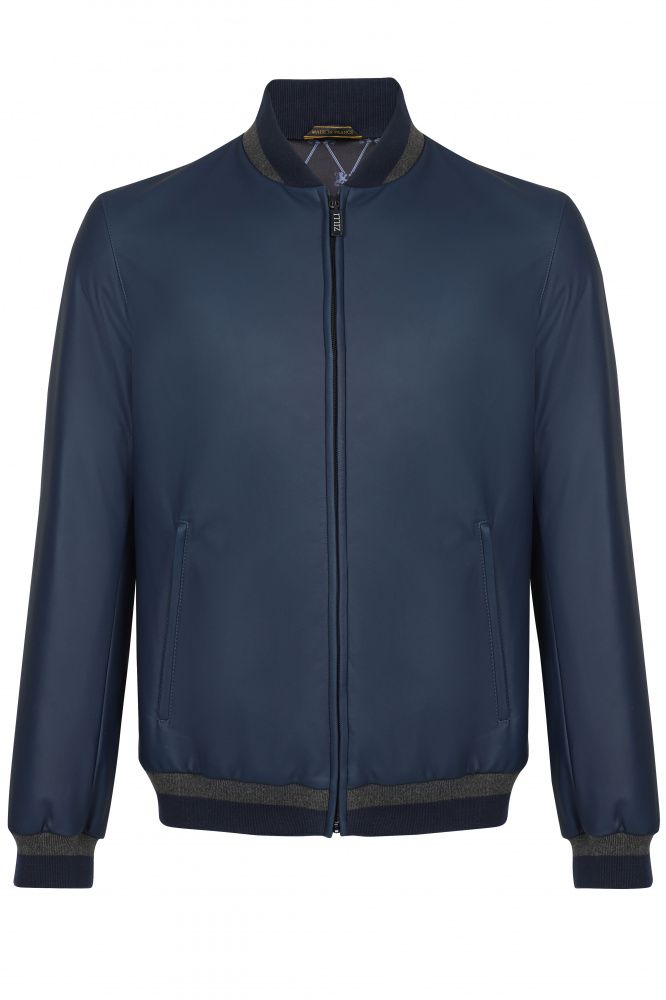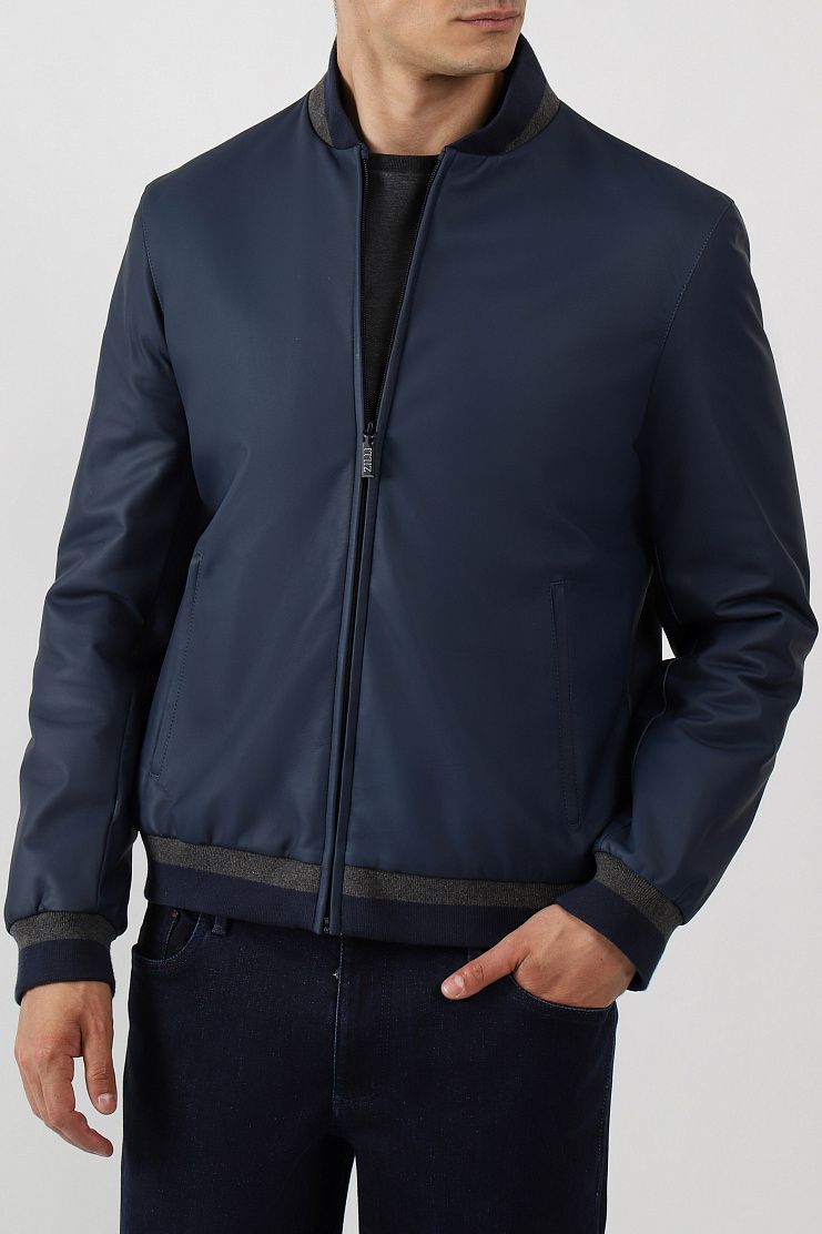 Кожаная куртка-бомбер прекрасно подойдет для стильного городского образа. Модель свободного кроя с боковыми карманами, воротником, манжетами и нижним краем из трикотажной резинки и застежкой на молнию.