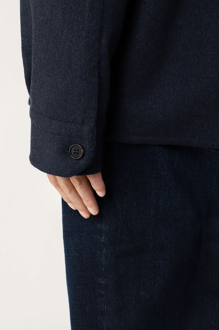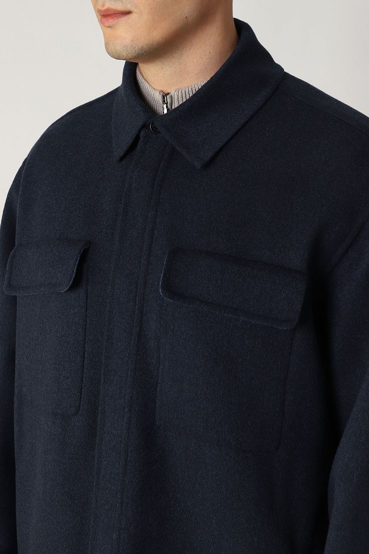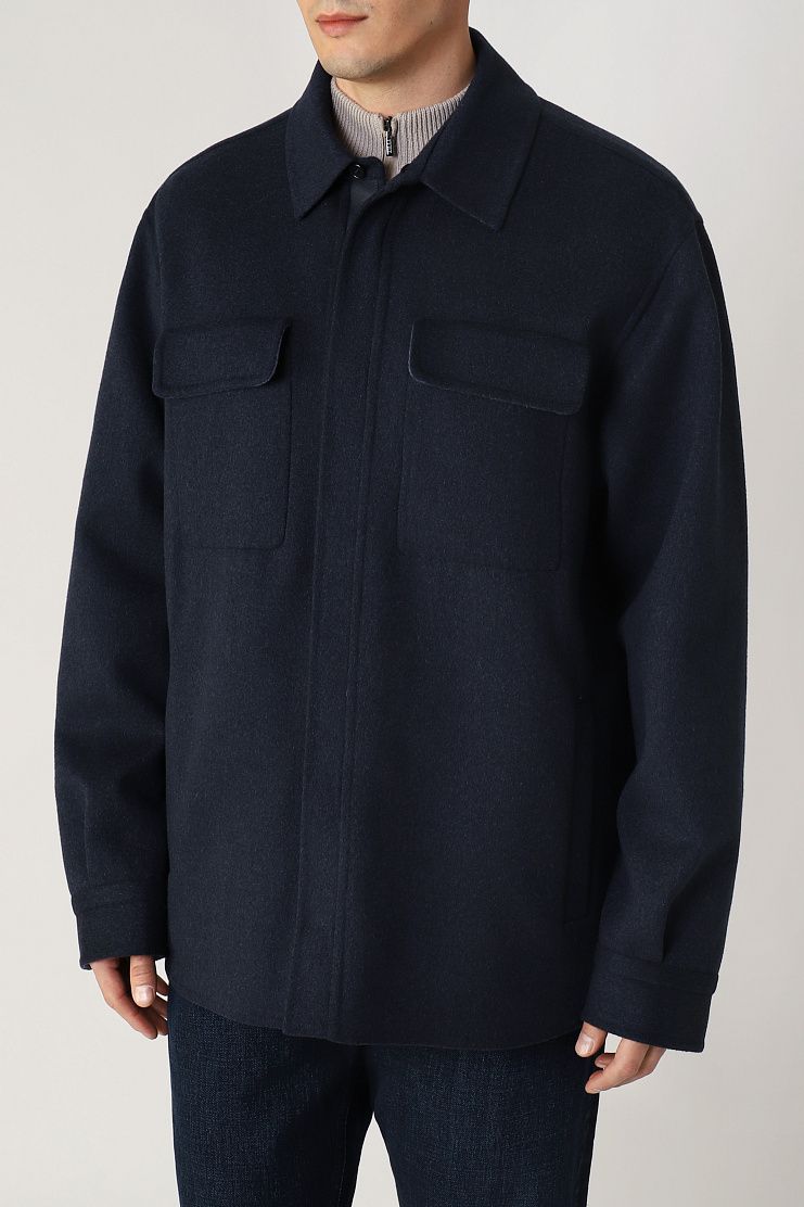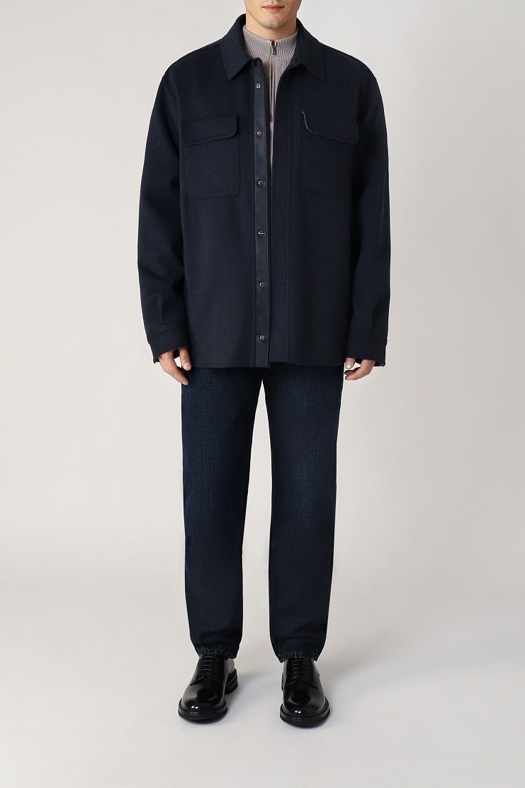 Куртку-рубашку свободного кроя сшили из мягкого кашемира с добавлением эластана. В изделии с таким составом будет тепло и комфортно в прохладные дни. Модель дополнена нагрудными и внутренними карманами, а также кожаной отделкой на планке с кнопками.