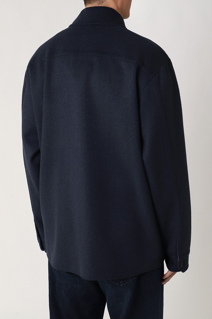 Куртку-рубашку свободного кроя сшили из мягкого кашемира с добавлением эластана. В изделии с таким составом будет тепло и комфортно в прохладные дни. Модель дополнена нагрудными и внутренними карманами, а также кожаной отделкой на планке с кнопками.