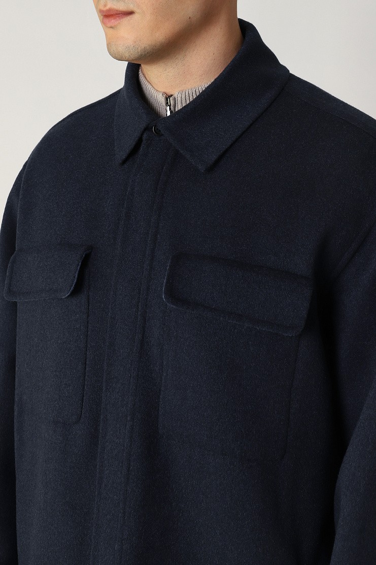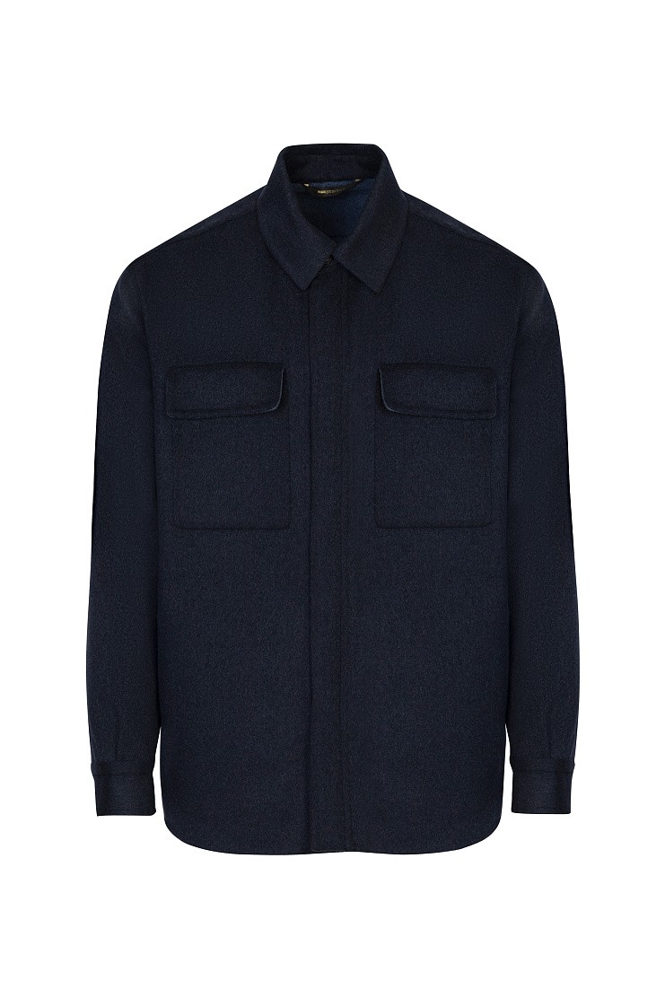 Куртку-рубашку свободного кроя сшили из мягкого кашемира с добавлением эластана. В изделии с таким составом будет тепло и комфортно в прохладные дни. Модель дополнена нагрудными и внутренними карманами, а также кожаной отделкой на планке с кнопками.