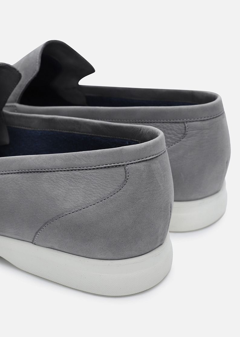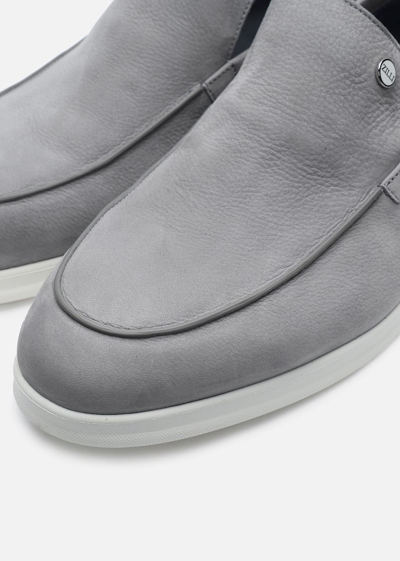 Лоферы из нубука прекрасно дополнят летний элегантный образ. Модель на кожаной подкладке, на белой резиновой подошве. По бокам расположены заклепки ZILLI из латуни с лакированной палладиевой отделкой.