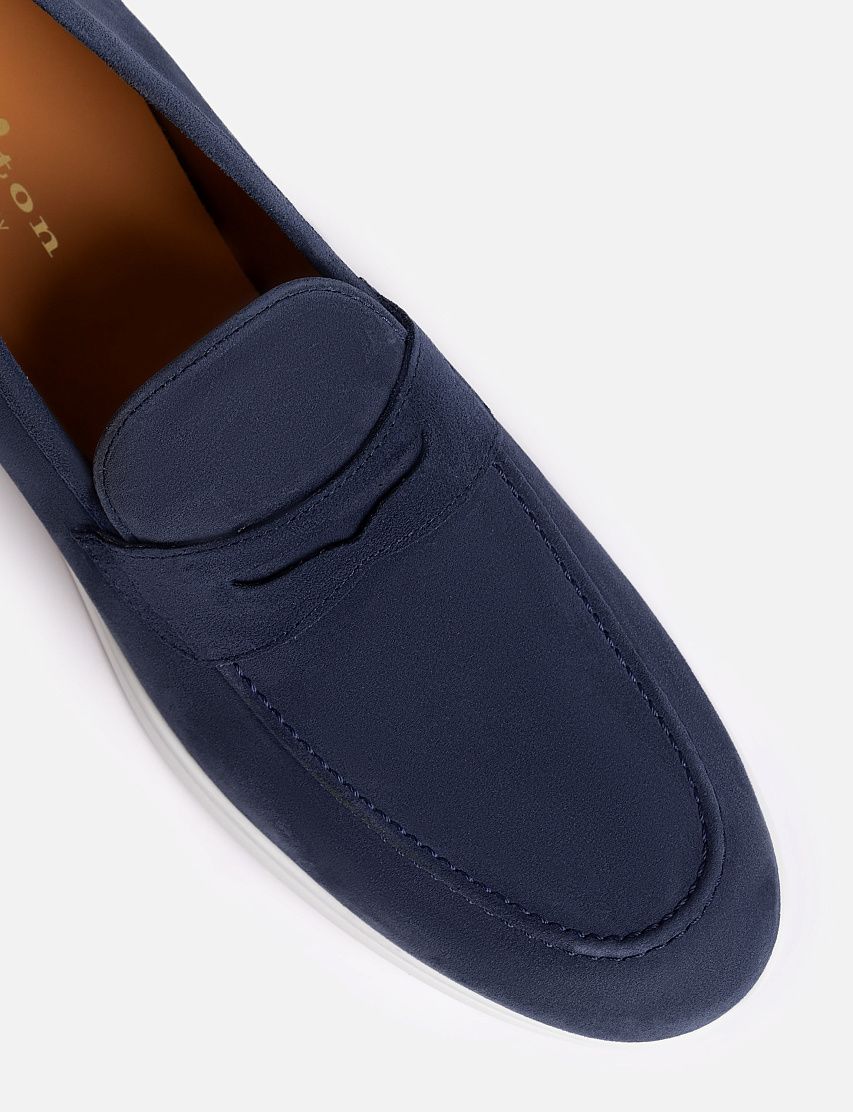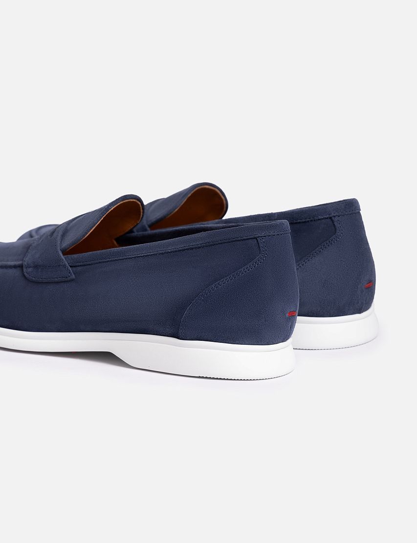 Для изготовления пенни-лоферов на контрастной полимерной подошве использовали тонко выделанную замшу. Пару с рельефным швом на мысе украсили фигурной перемычкой. Модель сдержанного оттенка отлично подойдет для повседневных образов.