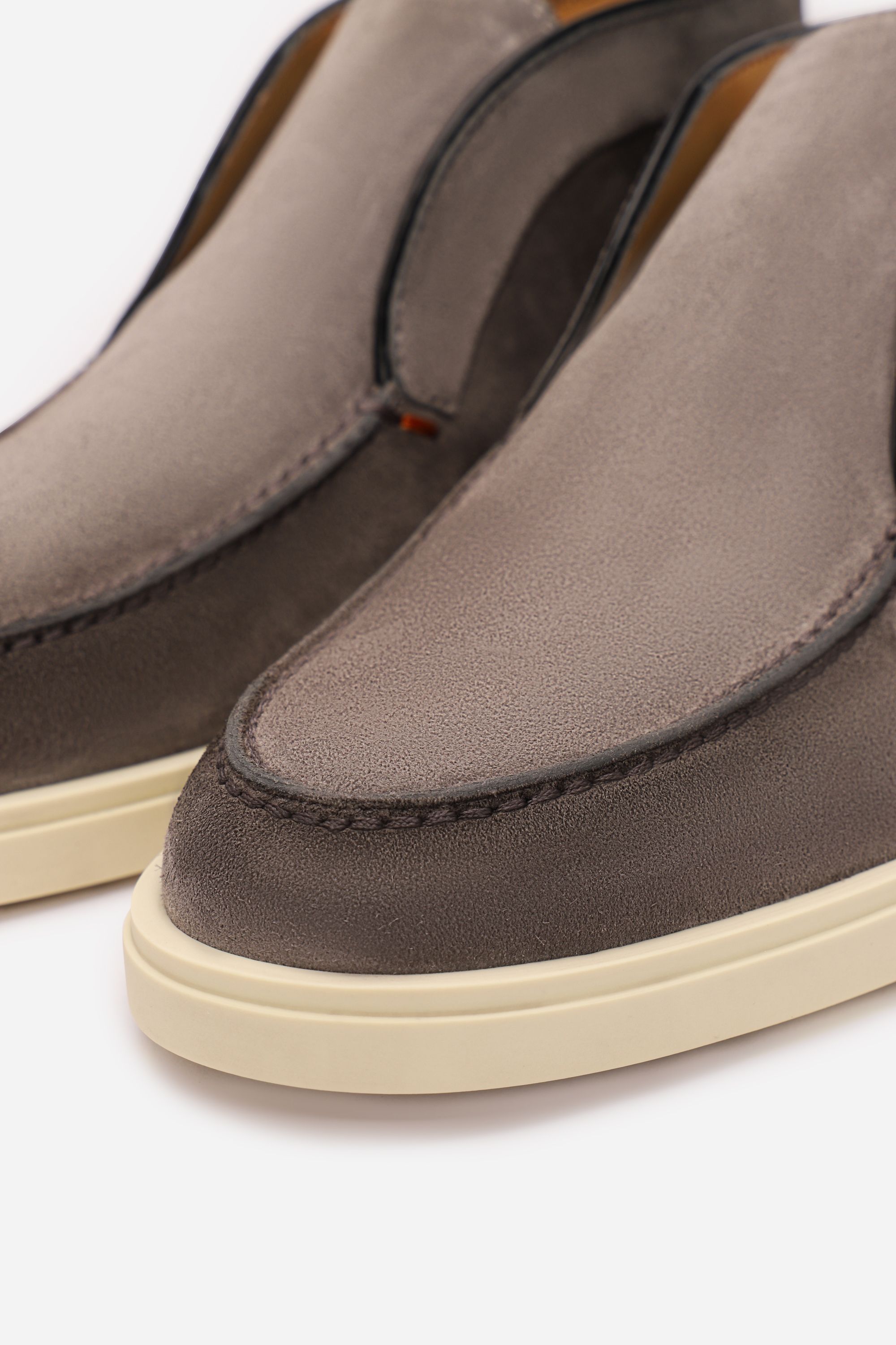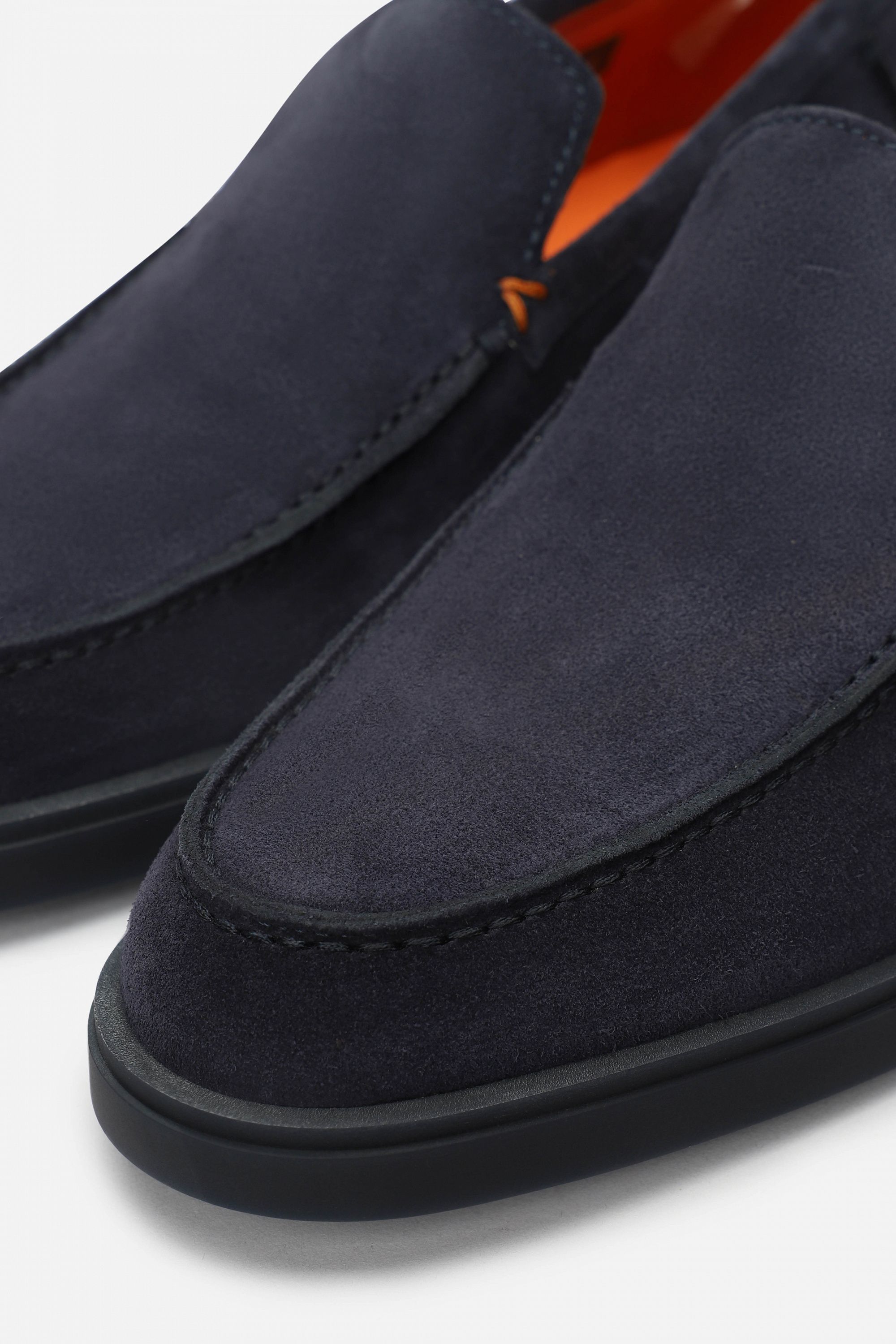 Замшевые лоферы позволят Вам чувствовать себя свободно и элегантно в повседневном образе. Модель имеет кожаную подкладку фирменного оранжевого оттенка и небольшой каблук.