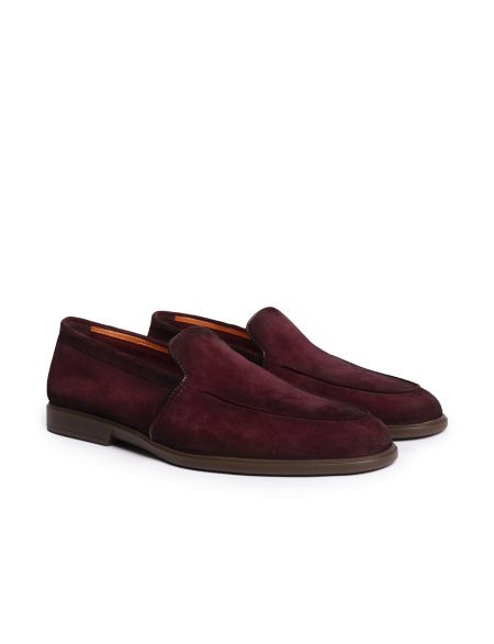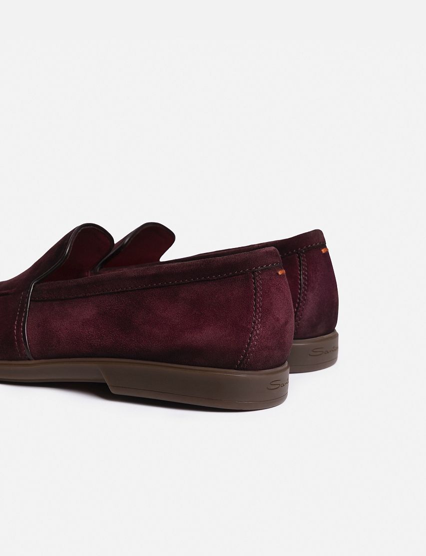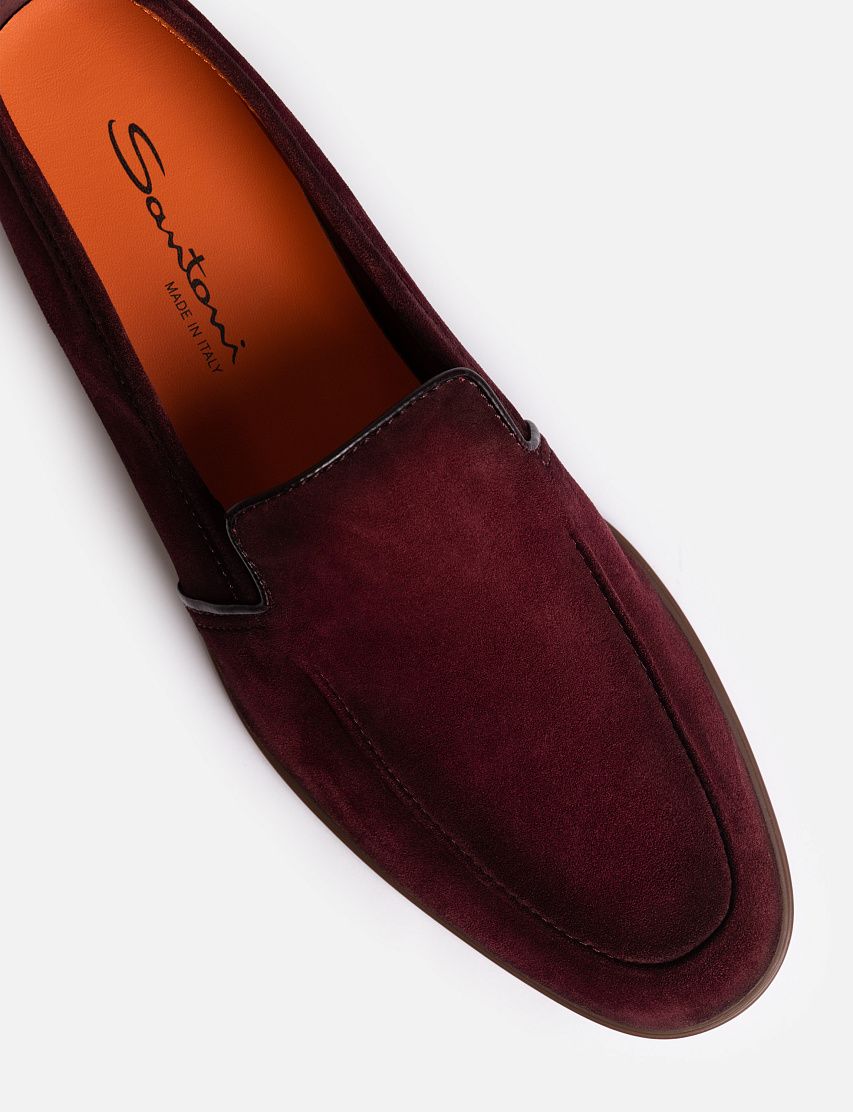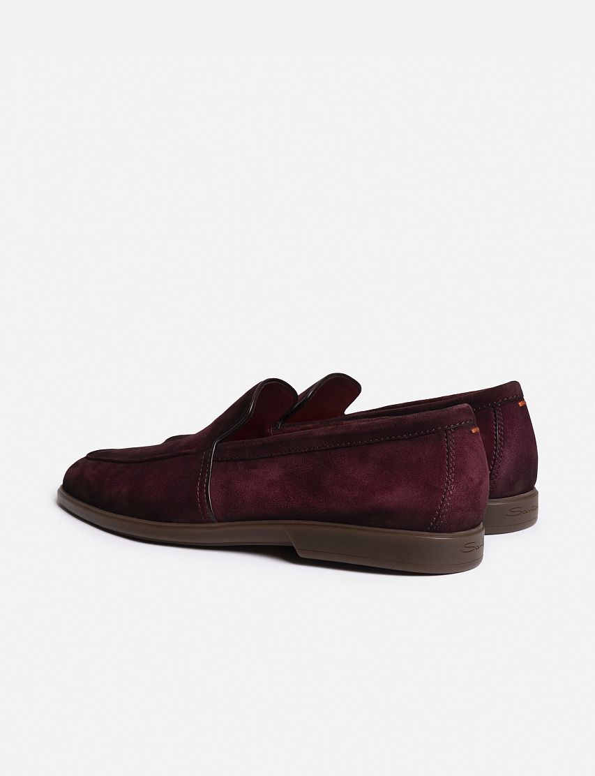 Лоферы Malibu с тонким рельефным швом на мысе выполнили из мягкой замши с нежной бархатистой фактурой. Модель на резиновой подошве украсили стежком фирменного оттенка Arancio Santoni на заднике.