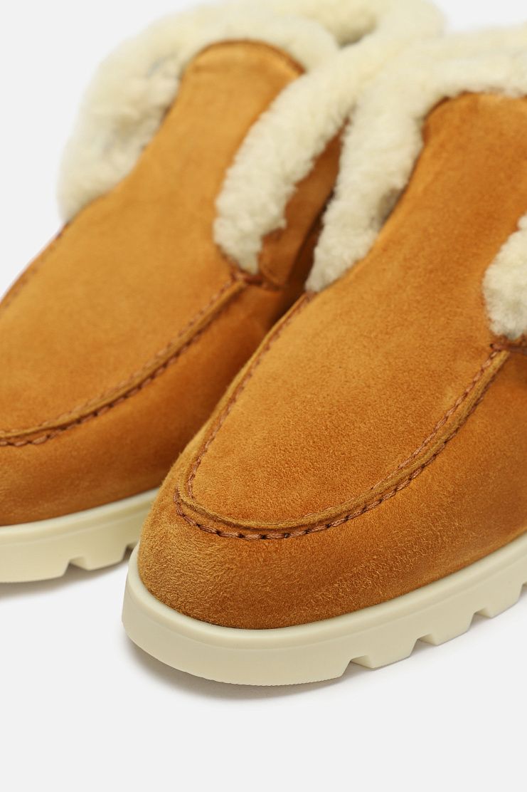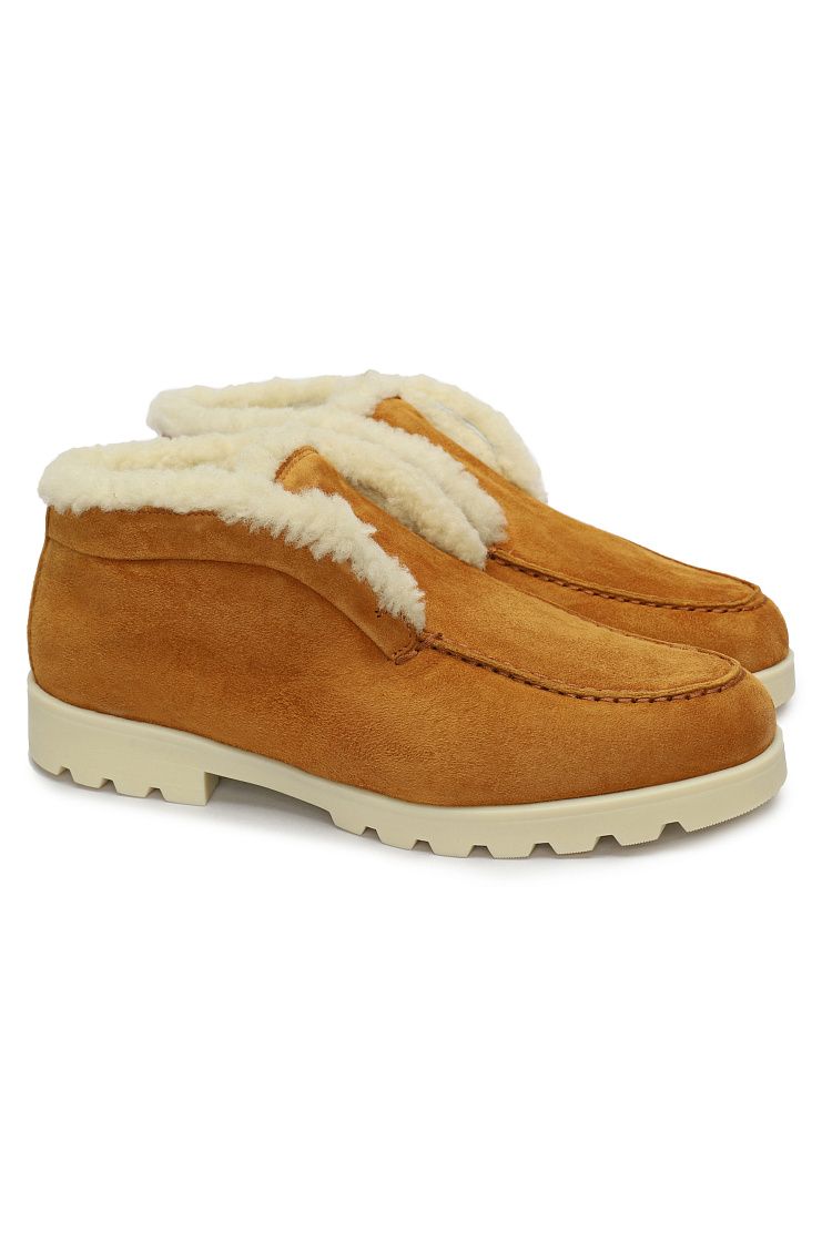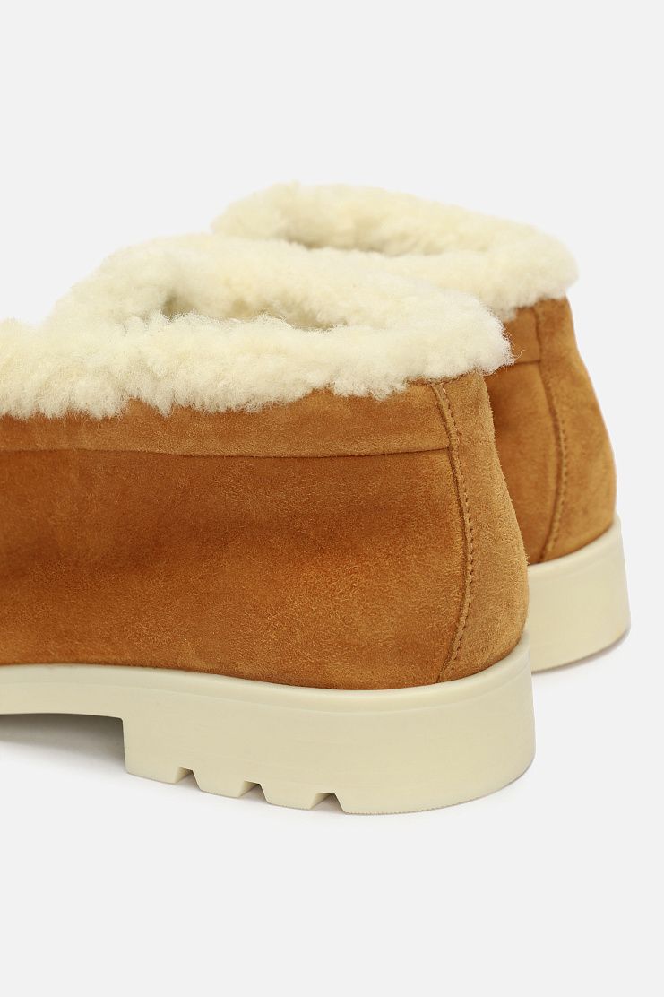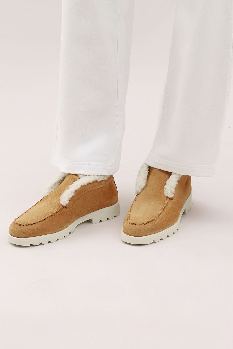 Замшевые лоферы с меховой подкладкой превосходно подойдут для холодной погоды. Модель имеет резиновую подошву с протекторами.