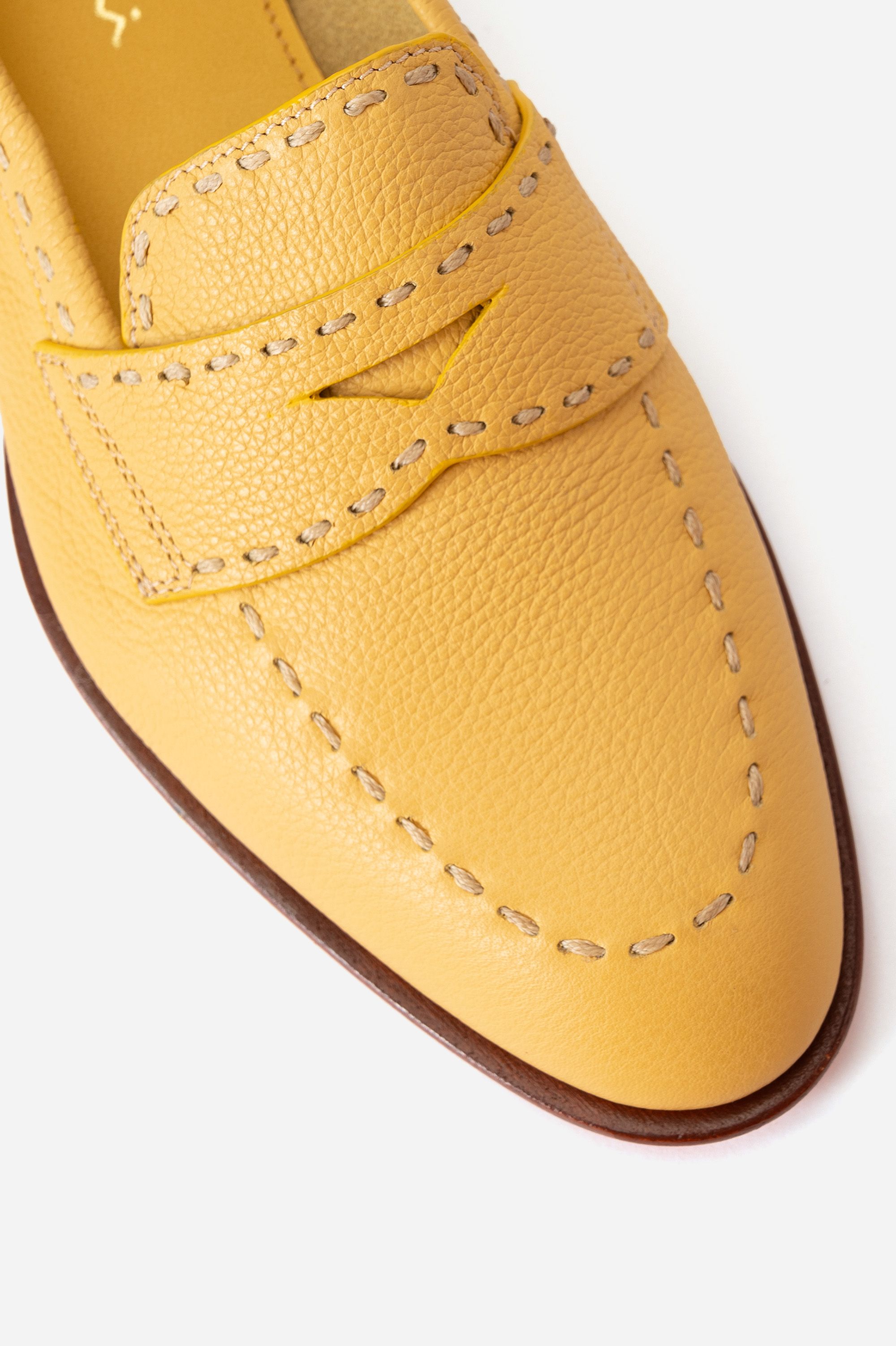 Лоферы с рельефным швом вдоль мыса выполнили из ворсистой телячьей шкуры. Пару на брендированной резиновой подошве дополнили меховой отделкой внутри и по краю выреза.