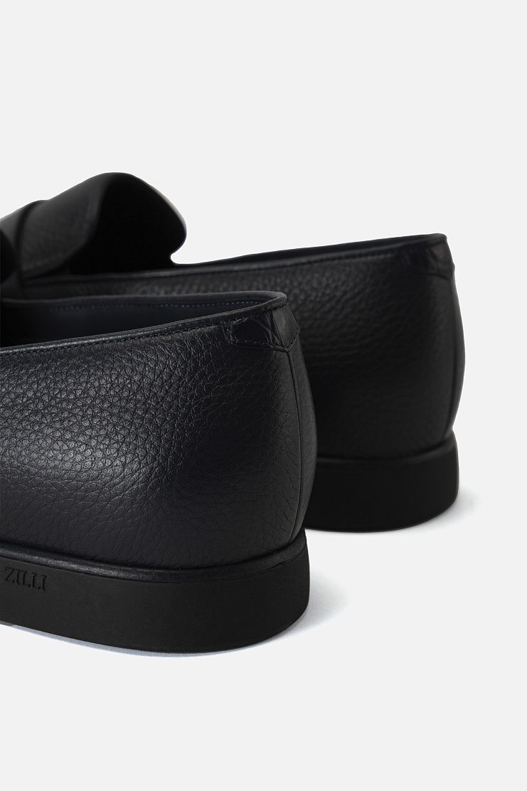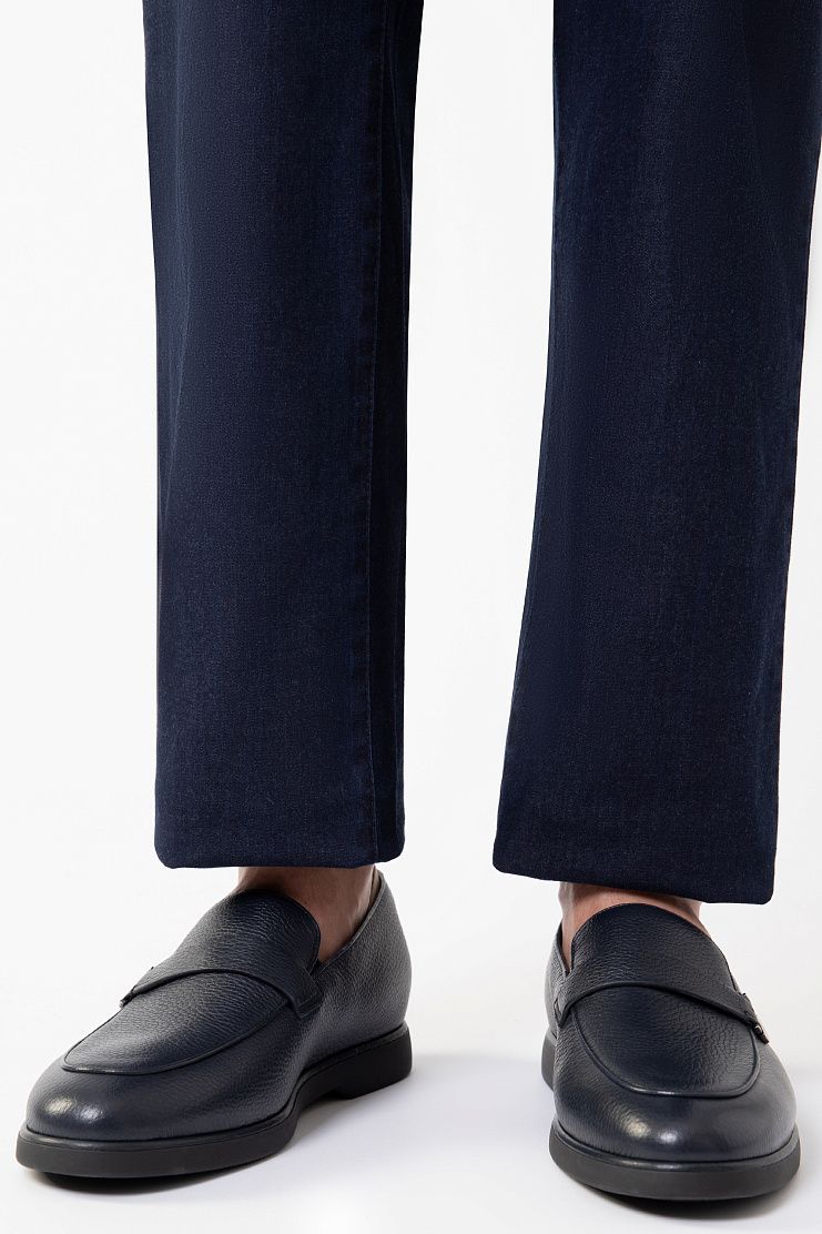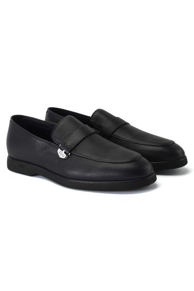 Лаконичные лоферы сшили из прочной оленьей кожи с зернистой текстурой. Модель на резиновой подошве дополнена перемычкой с брендированной металлической деталью. Задник укрепили с помощью накладки из кожи каймана. Такая пара органично впишется и в непринужденный повседневный, и в офисный образ.