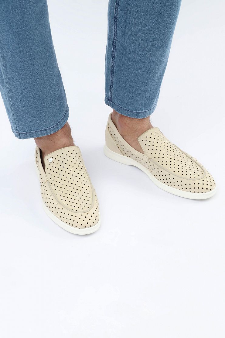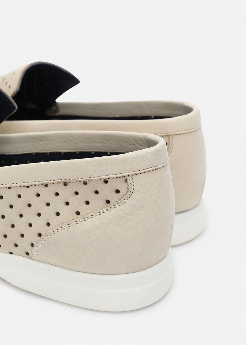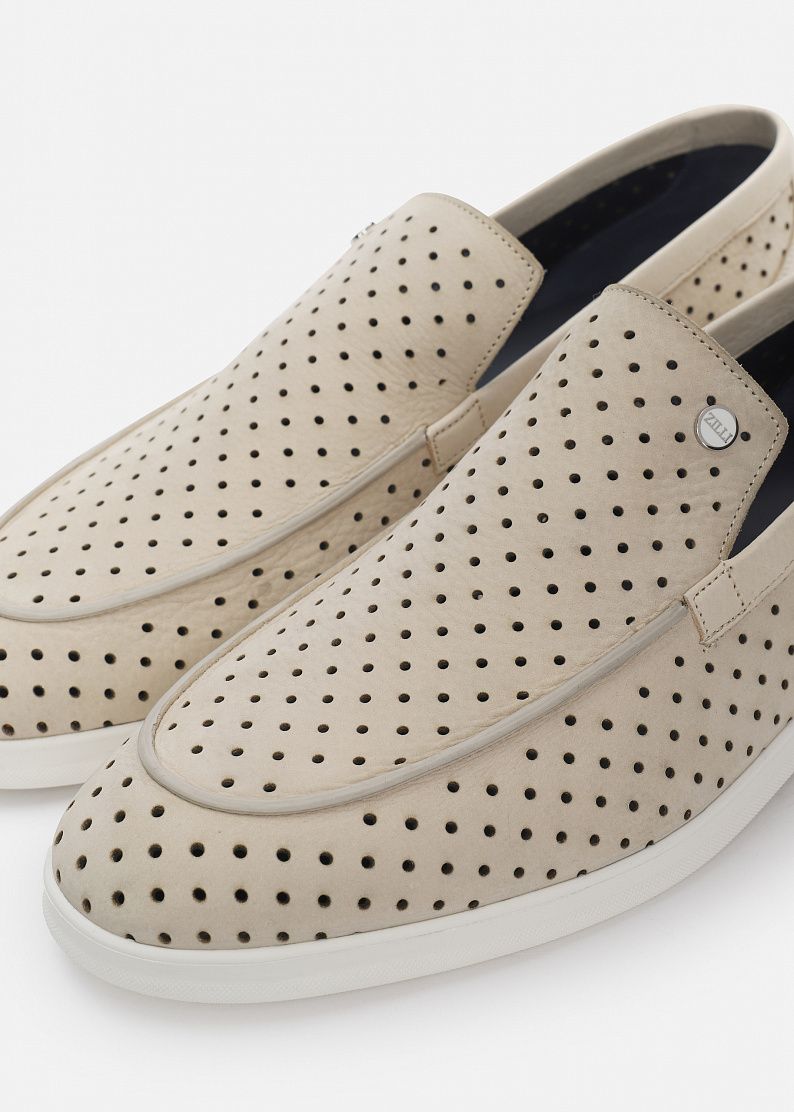 Лоферы выполнены из нубука с перфорацией на верхней и боковых сторонах и украшены заклепками с надписью ZILLI. Модель имеет кожаную подкладку и резиновую подошву.