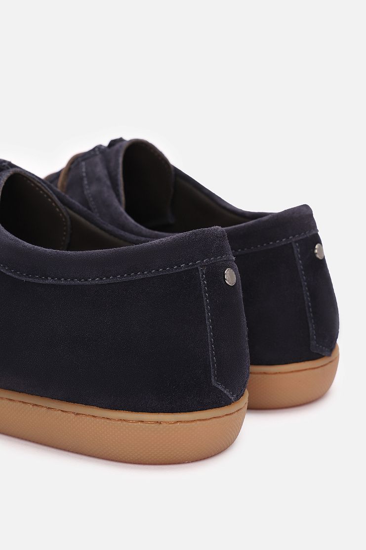 Замшевые мокасины с заклепками на задниках, позаимствовавшие свой дизайн у дезертов и спортивной обуви, подойдут для комфортного повседневного образа. Модель имеет кожаную подкладку и гибкую резиновую подошву натурального оттенка.