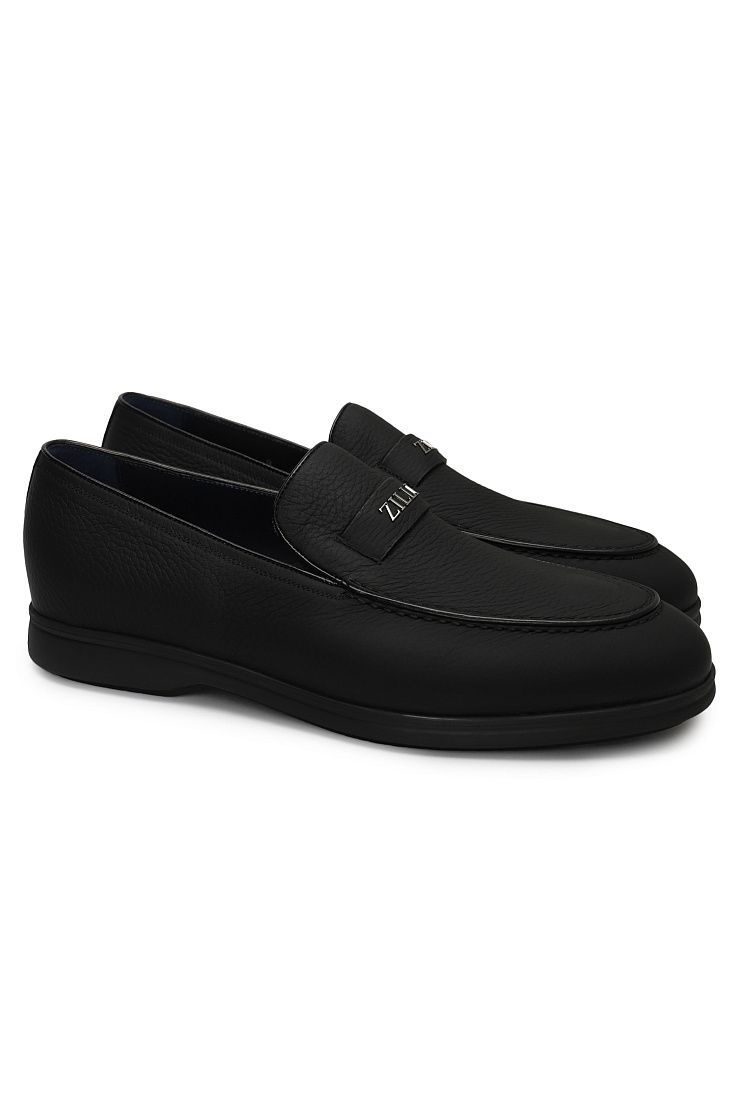 Мокасины из нубука с металлическим логотипом Zilli. Модель имеет кожаную подкладку и гибкую резиновую подошву.