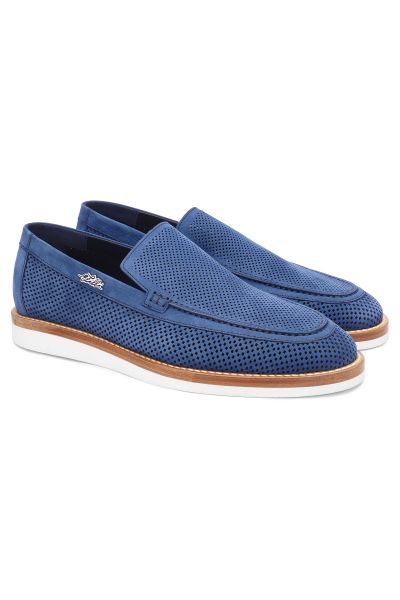 Замшевые мокасины выполнены из натуральной телячьей кожи с перфорацией. Дополнены гибкой прошитой подошвой. Мягкий материал легко подстраивается к форме стопы, гарантируя безупречную посадку по ноге. Мокасины украшены металлическим логотипом Zilli Poem — визитной карточкой бренда. Сочетайте с поло и светлыми брюками для повседневного летнего образа.