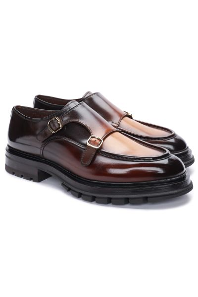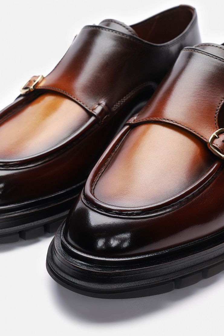 Монки из гладкой кожи с градиентом и эффектом патины, знаковой особенностью бренда. Модель имеет кожаную подкладку и толстую резиновую подошву с протекторами.