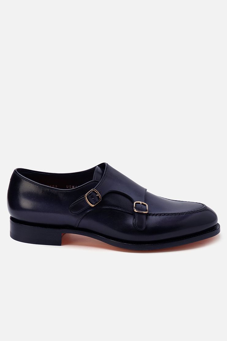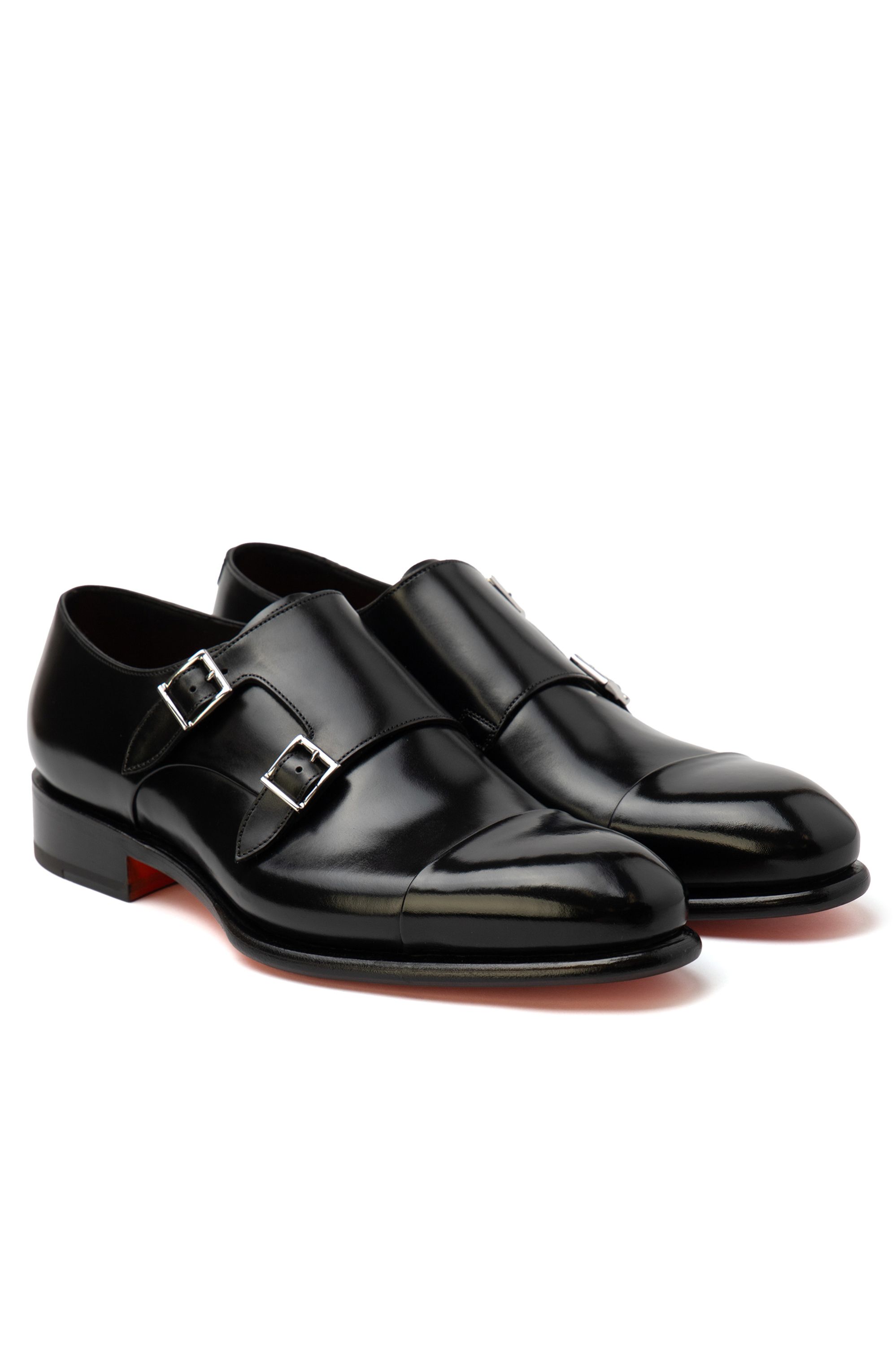 Туфли с двойными ремешками сшили из гладкой телячьей кожи, окрашенной в фирменной технике velatura для создания эффекта градиента.