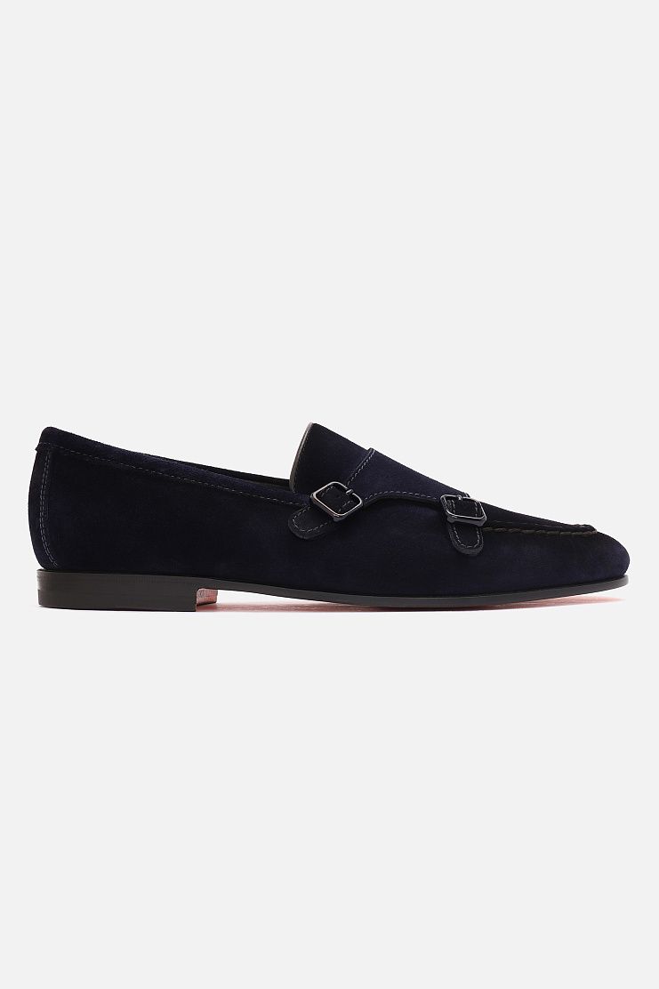 Монки с миндалевидными мысом, комфортно облегающие стопу, выполнили из прочного нубука с бархатистой фактурой. Чтобы сделать пару максимально прочной и гибкой, при пошиве использовали технику Goodyear.