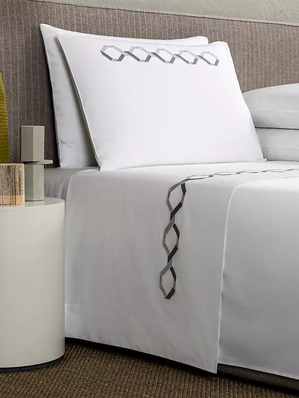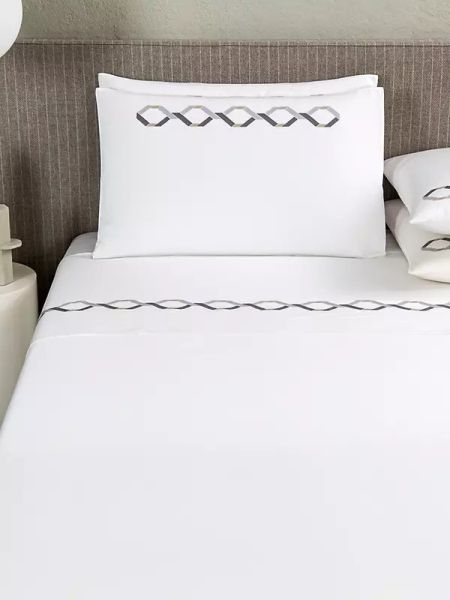 Белая наволочка Continuity Embroidery с вышивкой в виде геометрического орнамента белого и бежевого цветов. Изделие из мягкого длинноволокнистого хлопка отличается неповторимой гладкостью, шелковистостью и высокой прочностью.