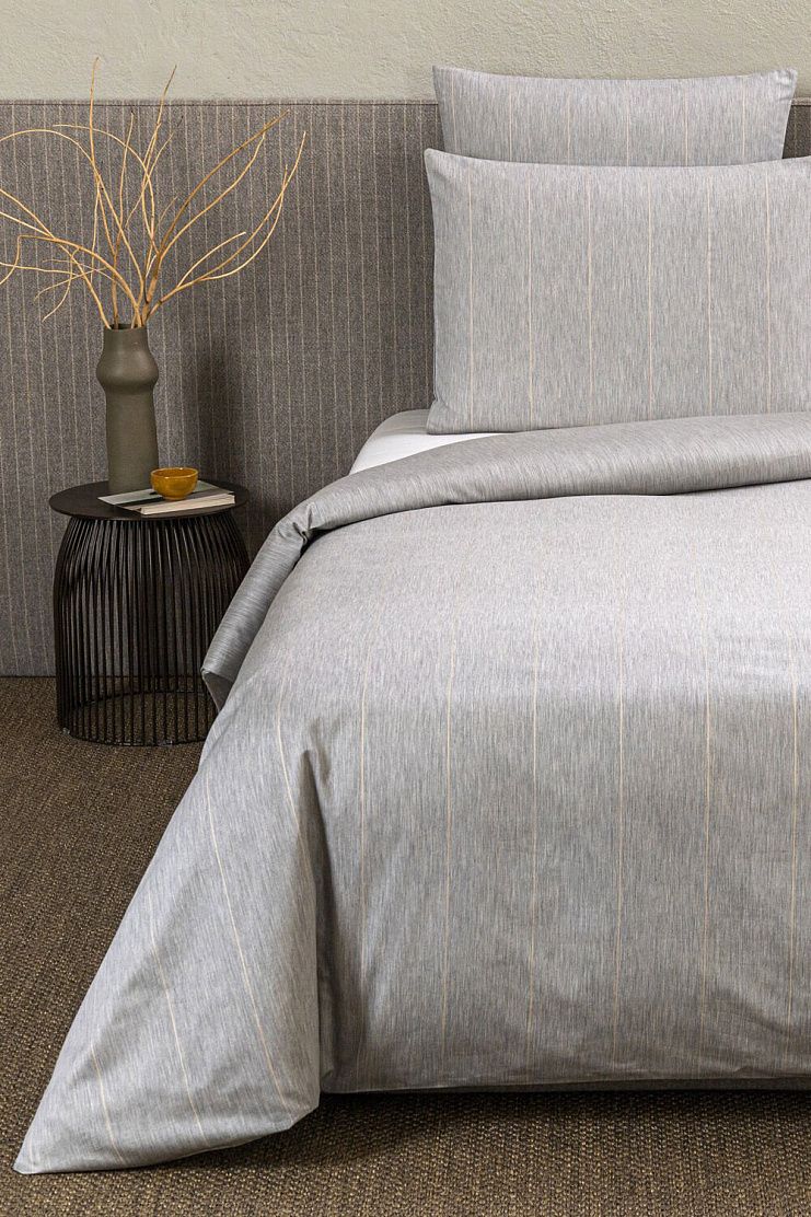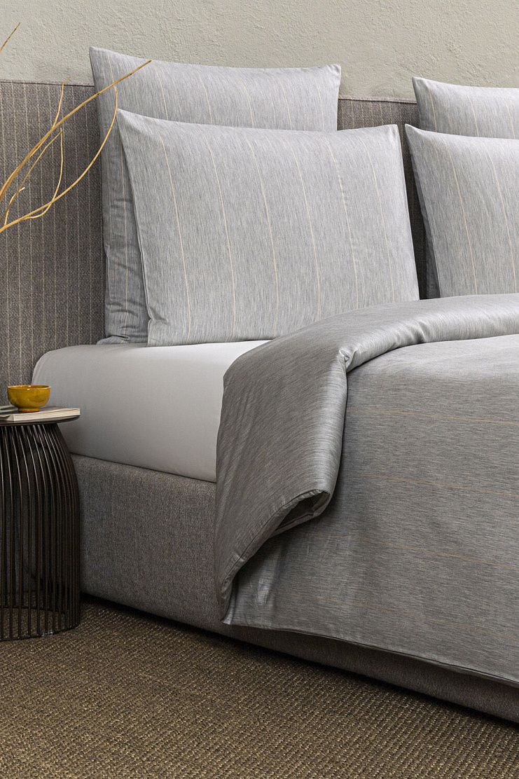 Наволочка Lunar серого цвета в тонкую бежевую полоску отличается элегантным геометрическим дизайном и легким блеском. Изделие из мягкого длинноволокнистого хлопка обладает неповторимой гладкостью и шелковистостью.