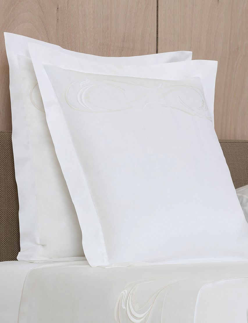 Квадратная наволочка Paisley Embroidery выполнена из гладкого хлопкового сатина. Текстиль, произведенный из самых длинных и тонких нитей, получился мягким, шелковистым и почти немнущимся. Модель украшена изящным вышитым узором пейсли в тон.