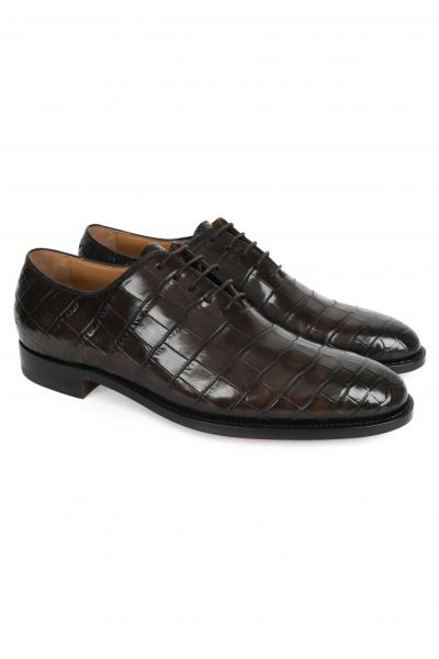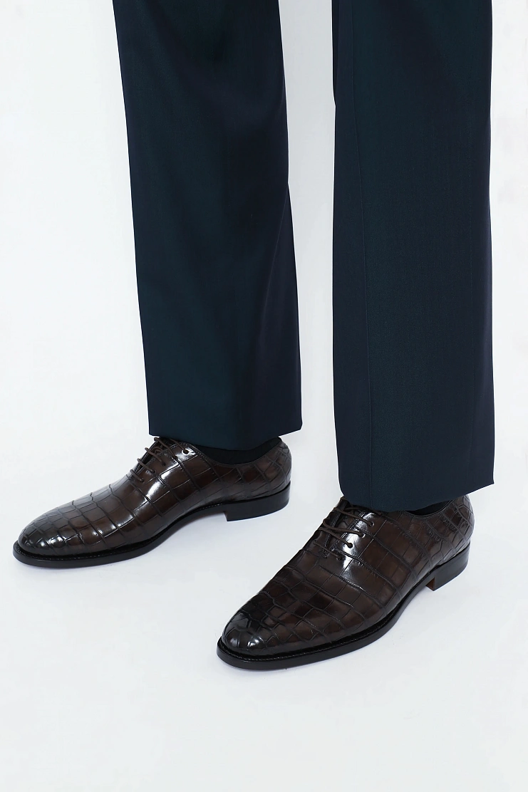 Оксфорды из кожи крокодила шикарно дополнят деловой костюм. Модель выполнена на кожаной подкладке.