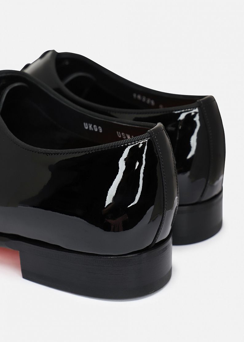 Оксфорды из лаковой кожи идеально дополнят смокинг и подойдут для торжественного мероприятия. Модель имеет кожаную подкладку и небольшой каблук.