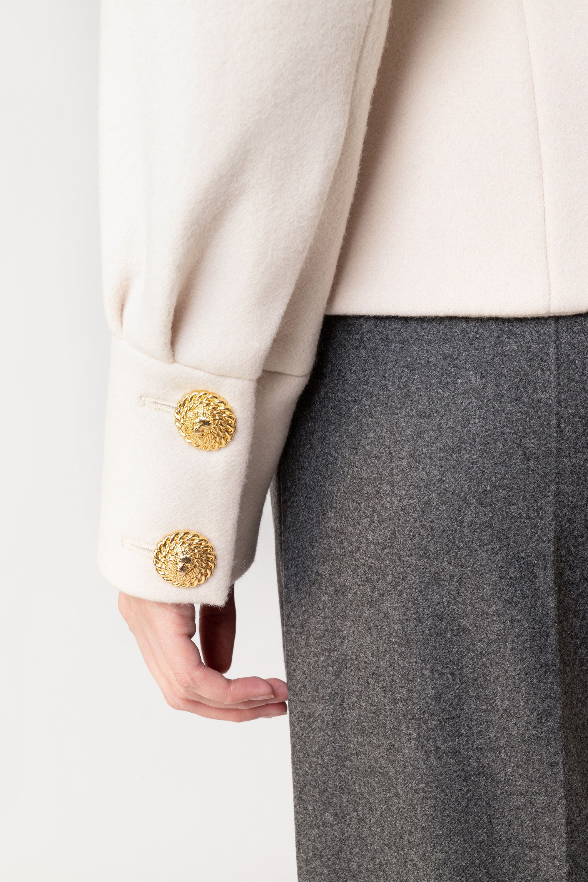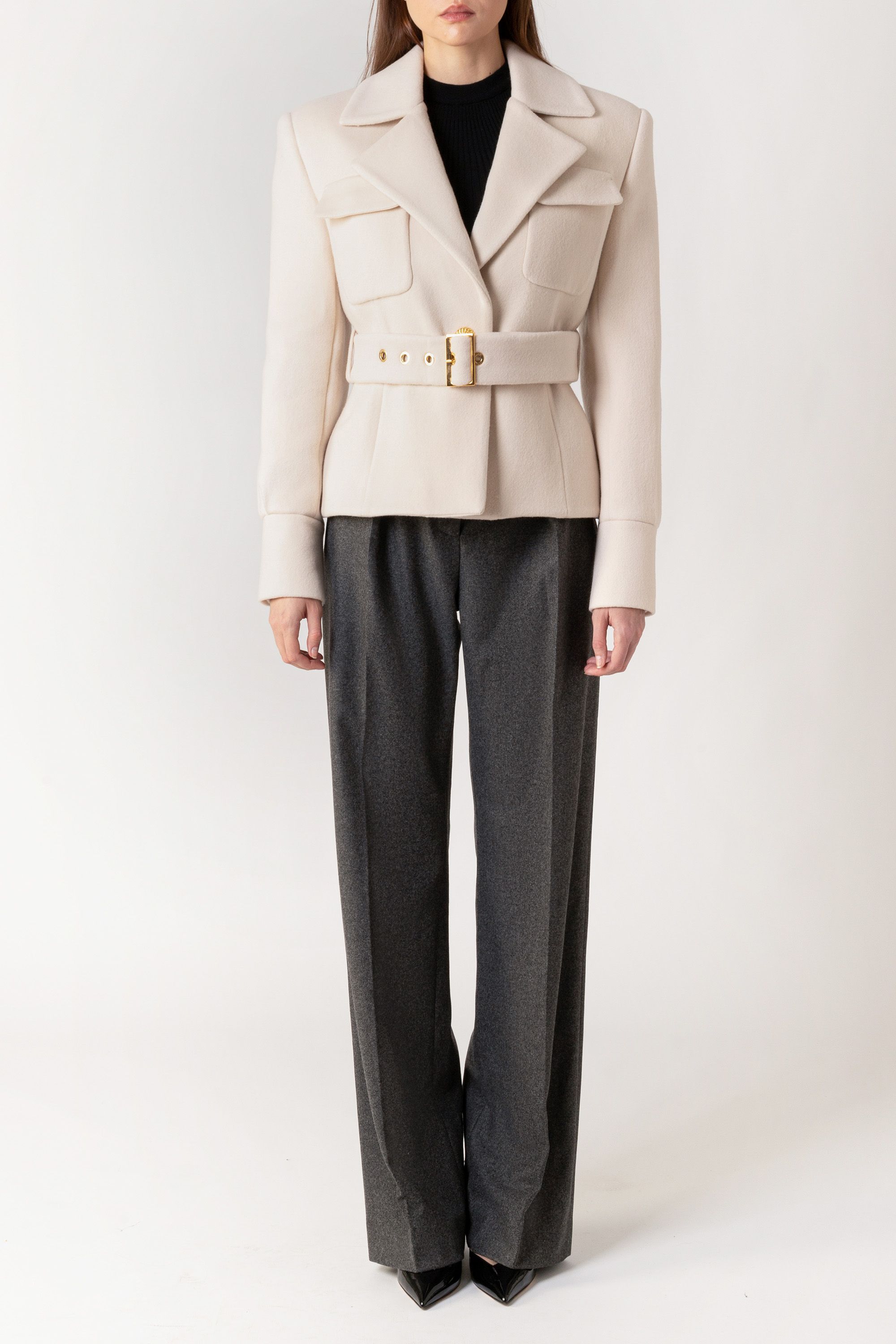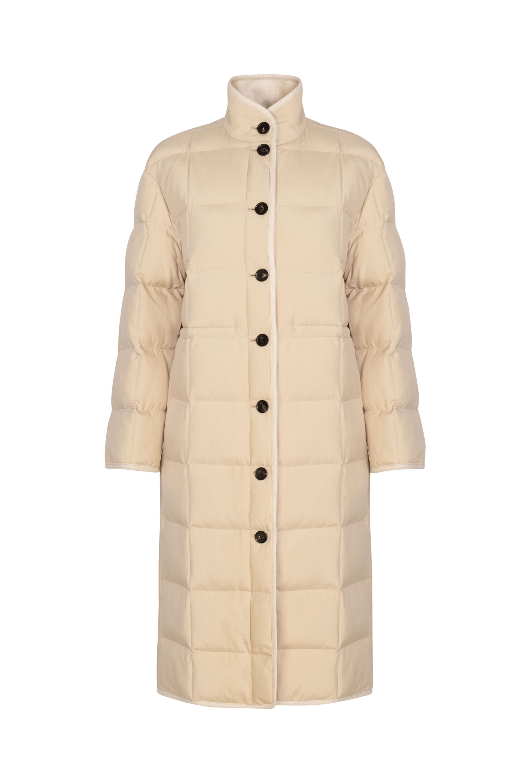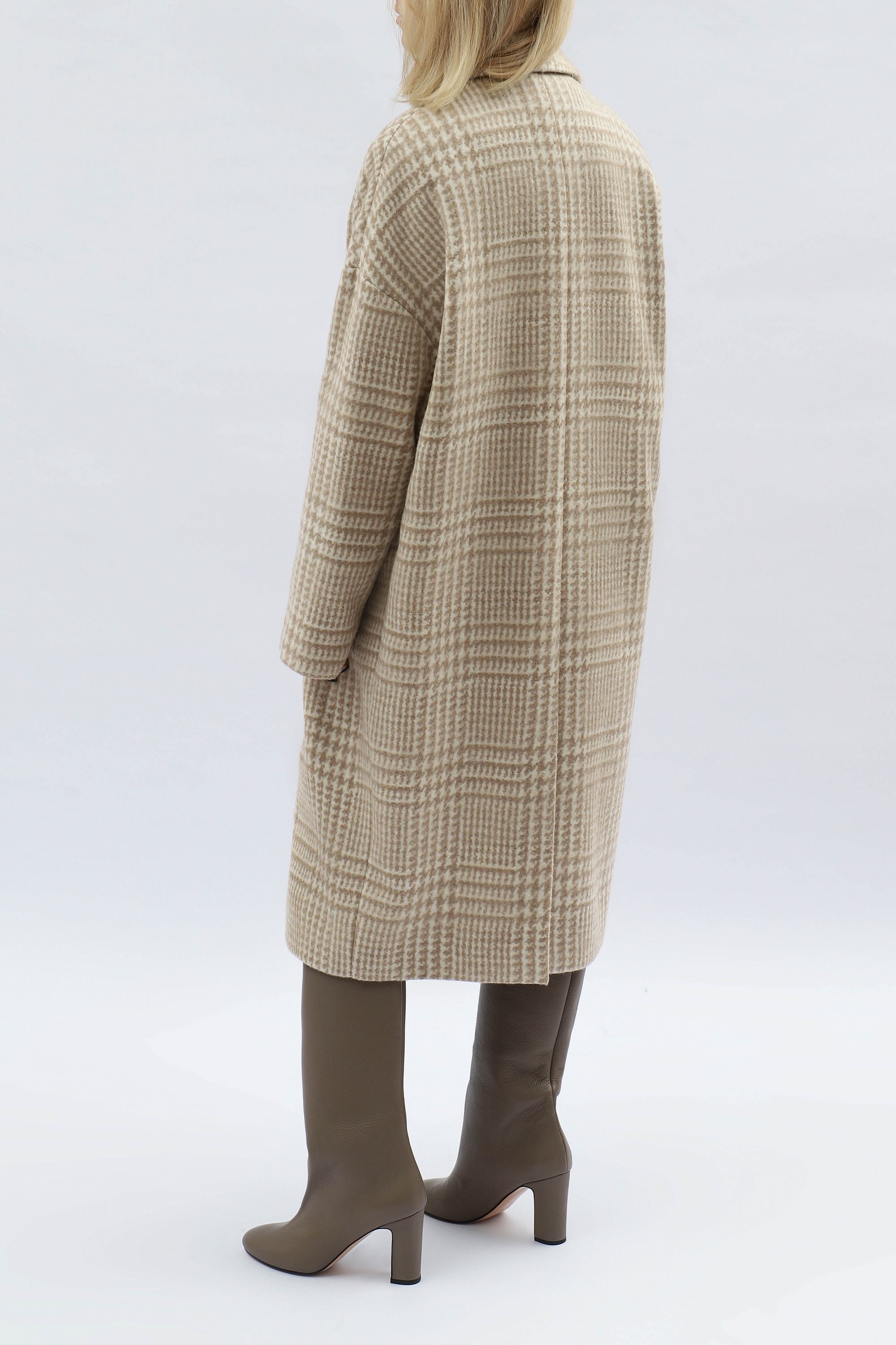 Двустороннее пальто из мягкой невесомой шерсти согреет в прохладную погоду. Модель с узнаваемым жаккардовым узором дополнена капюшоном, шалевыми лацканами, боковыми карманами и поясом. Изделие без подклада идеально садится по фигуре.