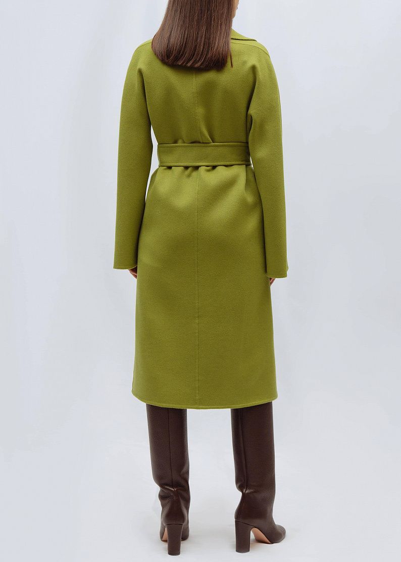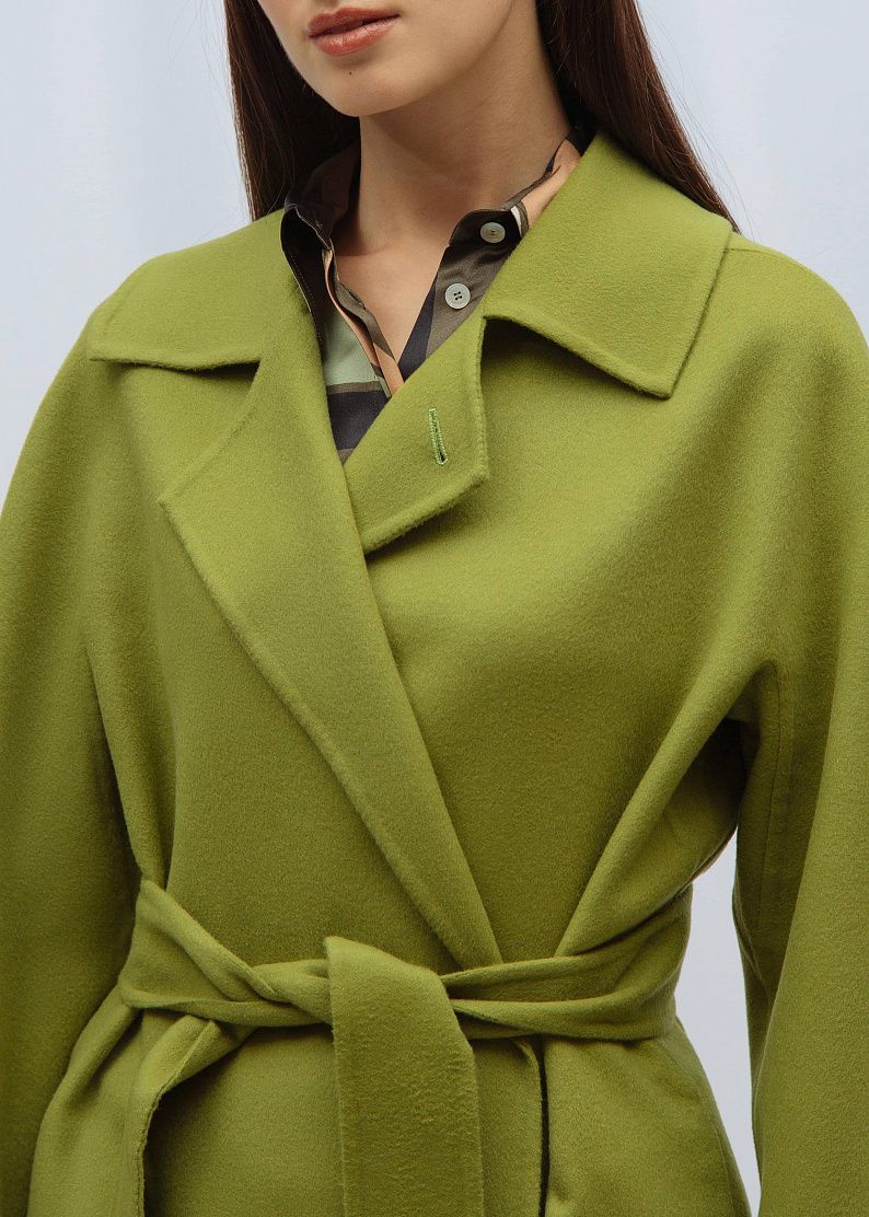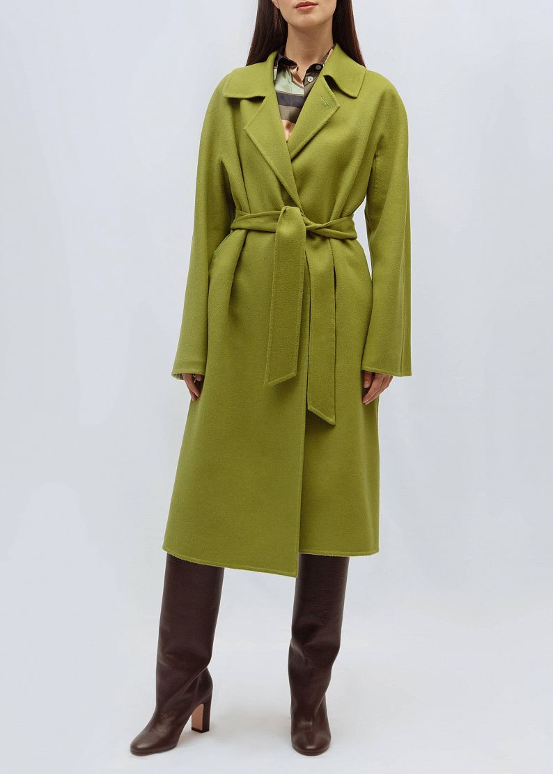 Кашемировое пальто на запахе. Модель свободного силуэта со съёмным поясом.