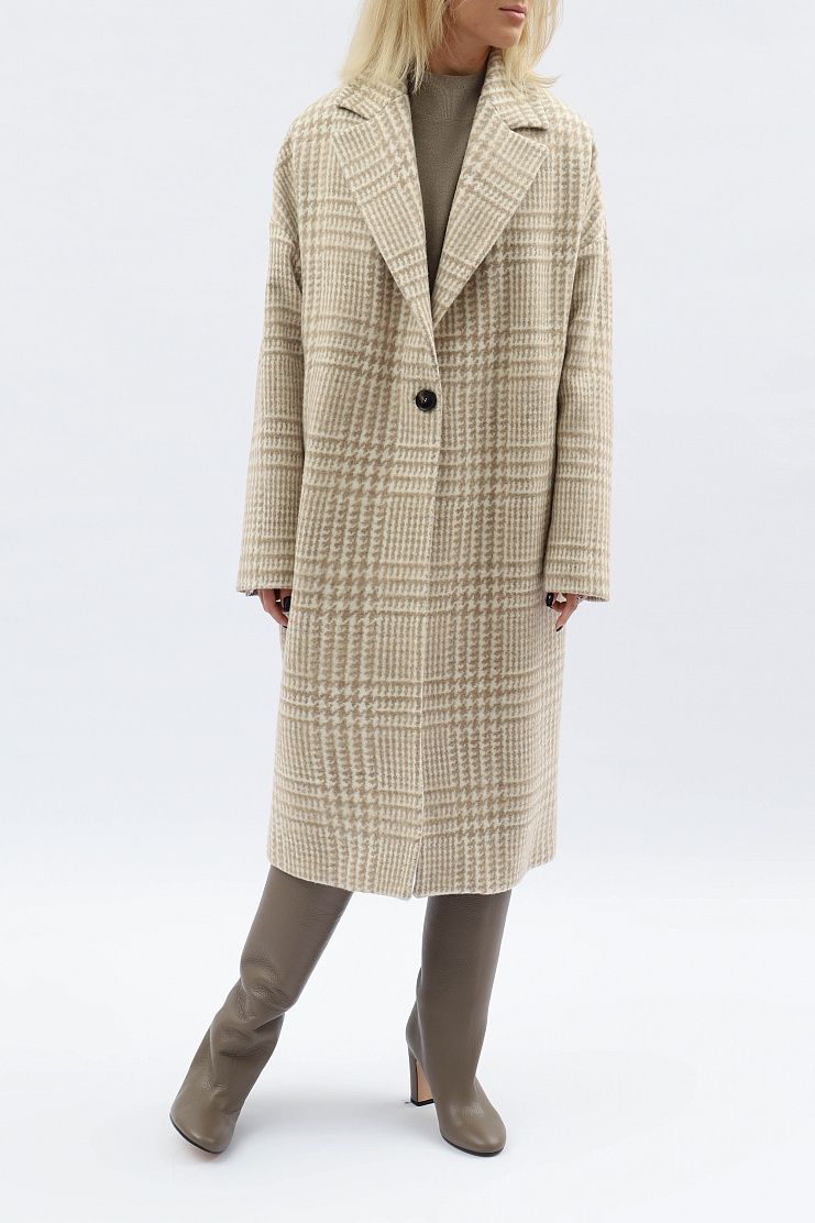 Пальто оверсайз в клетку «Принц Уэльский» великолепно подойдет для современного элегантного образа. Модель на шелковой подкладке с лацканами и застежкой на одну пуговицу.