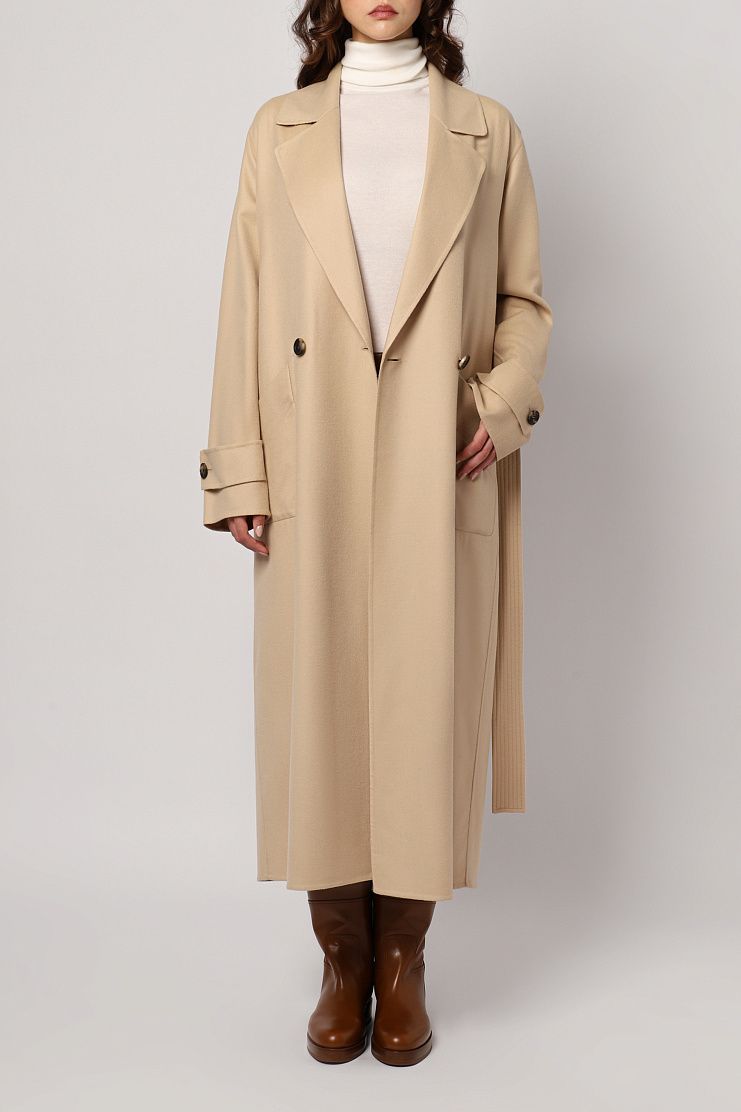 Двубортное пальто Freddy выполнено из чистого кашемира. Материал из вычесанного и отобранного вручную пуха горных монгольских коз отлично сохраняет тепло, при этом в одежде из него не будет жарко. Два слоя ткани бережно собраны потайными швами вручную, усиливая свойства материала вдвое. За счет отсутствия подкладки модель садится точно по фигуре. Пальто дополнено классическим воротником с лацканами, боковыми карманами и поясом. Роговые пуговицы с логотипом завершают фирменный стиль.