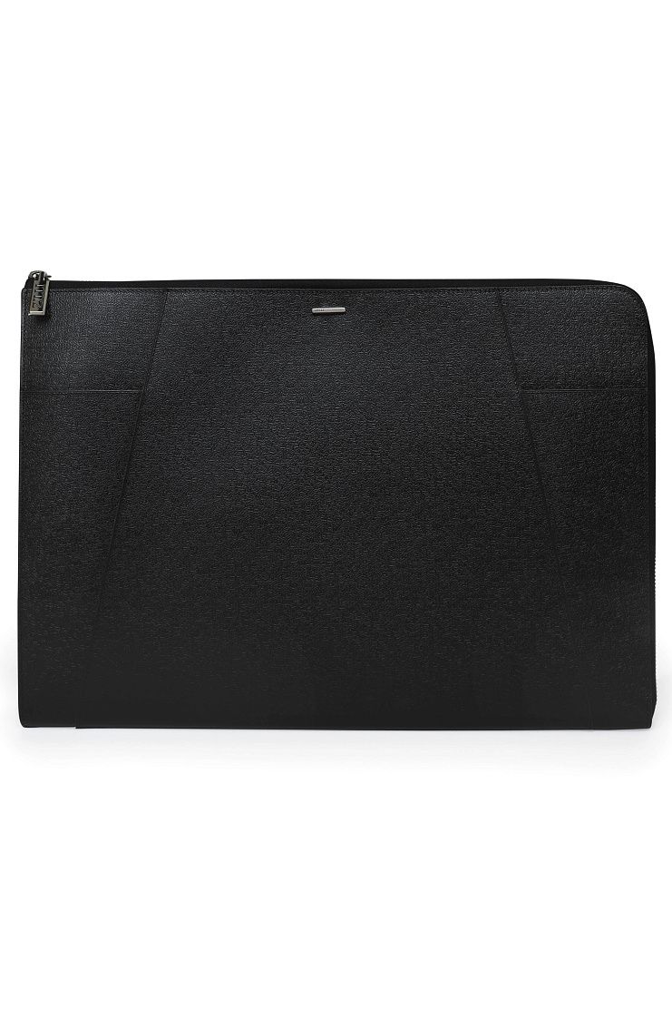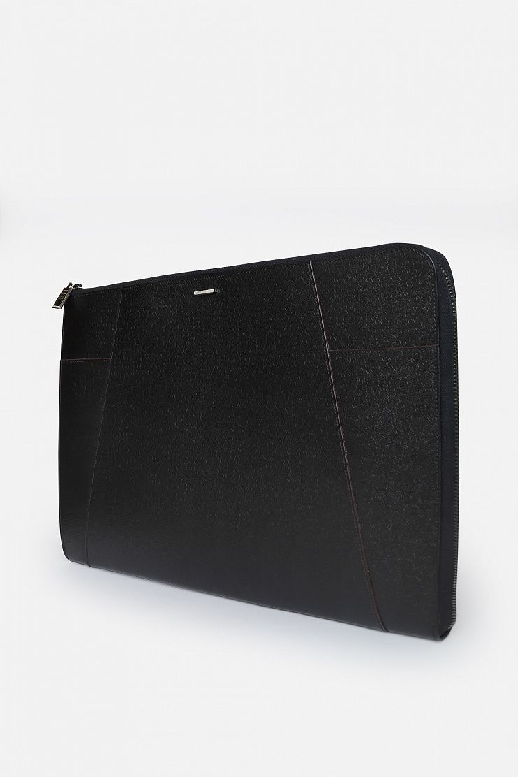 Папка для документов из кожи с фактурным рисунком — идеальный аксессуар для делового мужчины. Изделие выполнено с основным отделением на молнии и множеством карманов и слотов внутри. Снаружи модель украшена слитком с логотипом бренда.