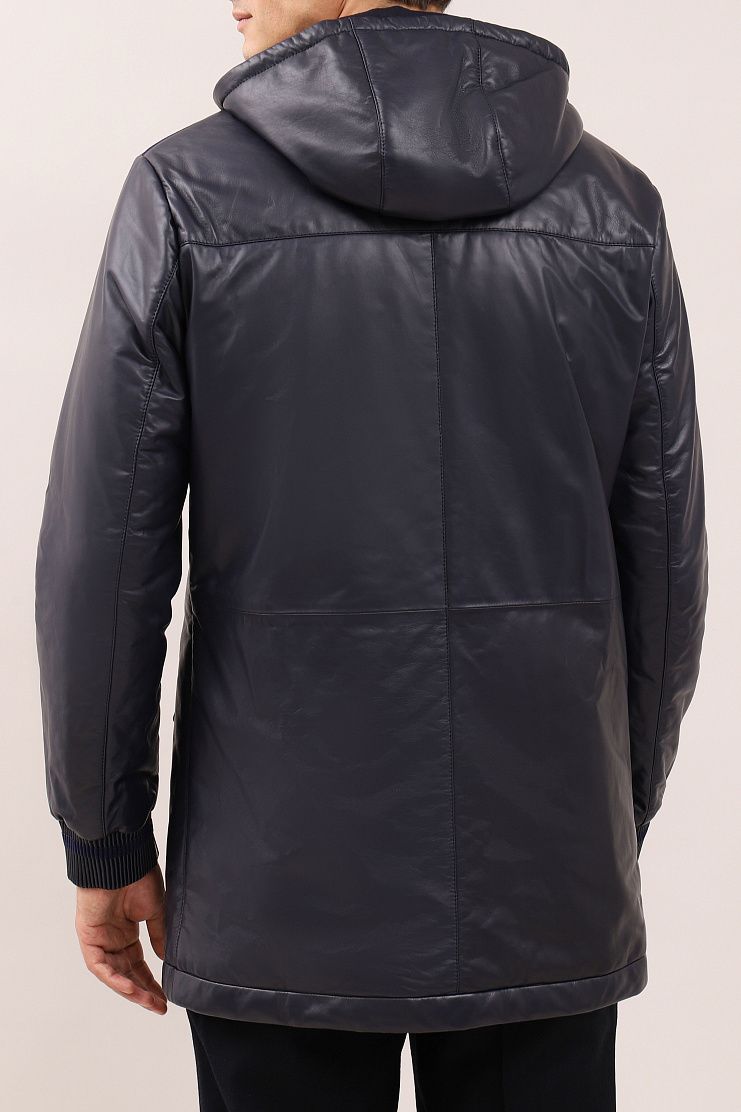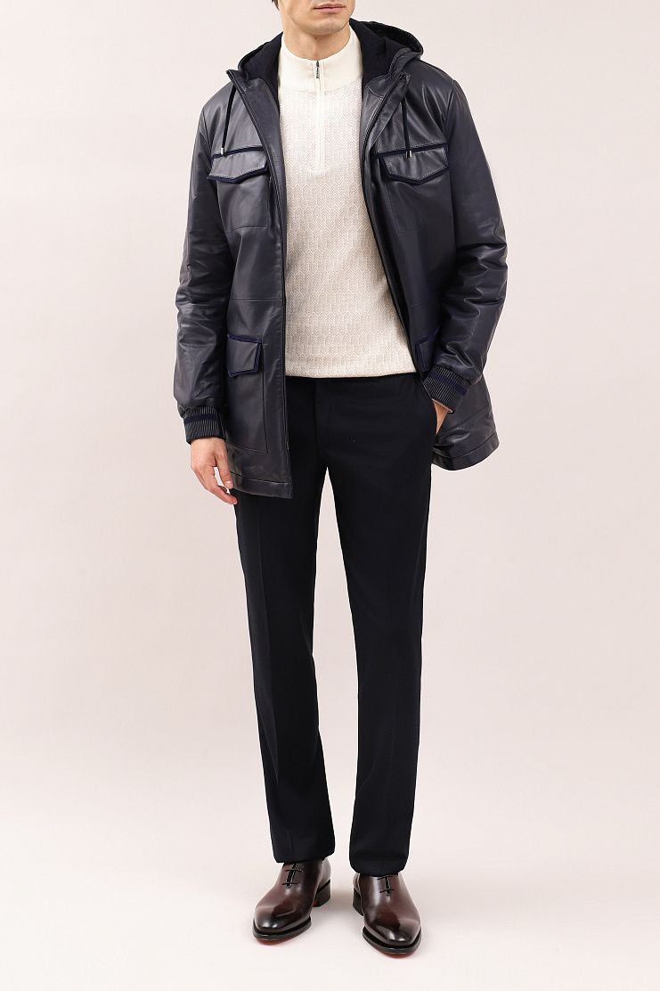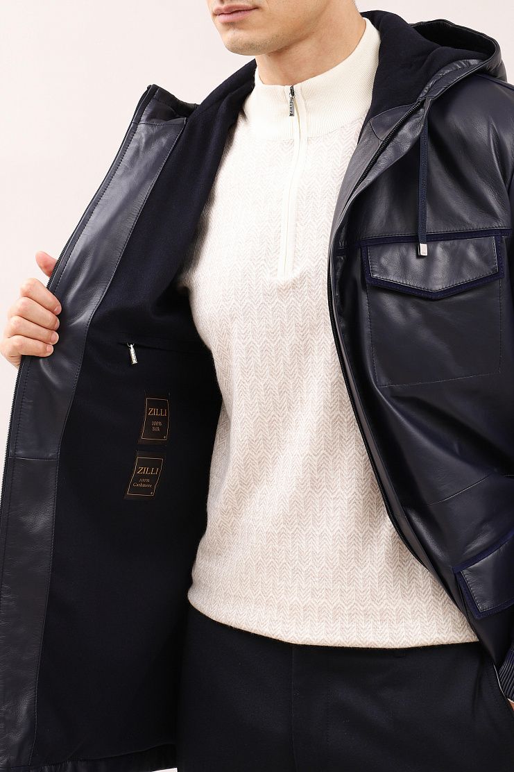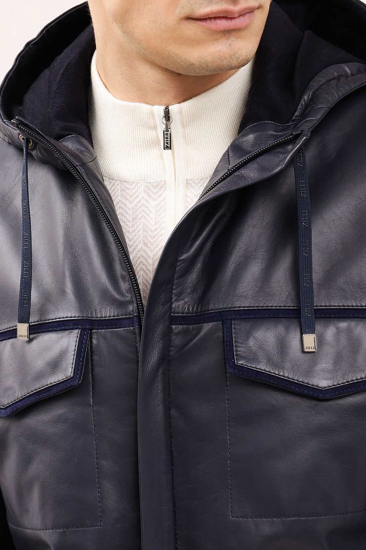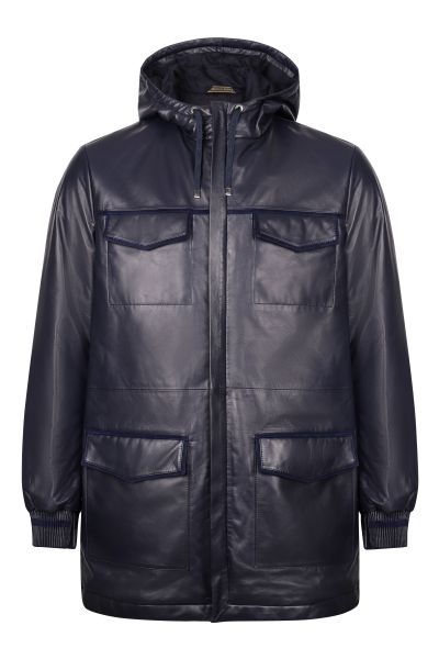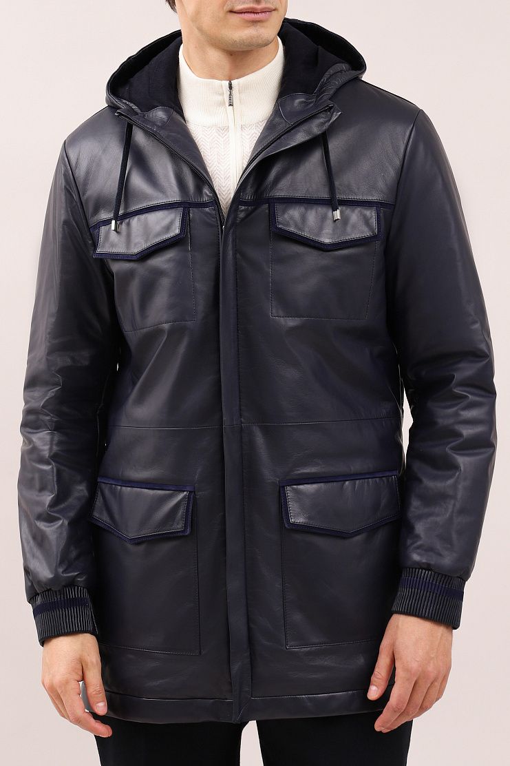 Кожаная парка с замшевой отделкой идеально соединила в себе функциональность и стильный внешний вид. Удлиненная модель свободного кроя имеет капюшон на завязках, накладные нагрудные и боковые карманы, манжеты на рукавах из трикотажной резинки и застежку на молнию. Мягкая подкладка украшена шикарной вышивкой в виде льва, эмблемы бренда Zilli.