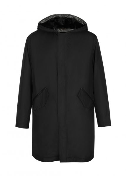 Шелковая парка с меховой подкладкой идеально сочетает в себе высокие теплозащитные свойства и изысканный внешний вид. Модель имеет капюшон, боковые карманы,пояс на кулиске и скрытую застежку на молнию и пуговицы.