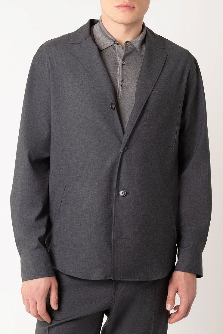 Однобортный пиджак из тонкой шерсти легко впишется в расслабленный повседневный образ. Свободный крой и отсутствие подклада обеспечивают комфортную, не сковывающую движений посадку. Изделие с закругленным нижним краем дополнено карманами и застегивается на пуговицы.