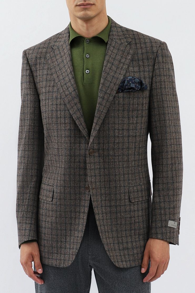 Пиджак в клетку. Модель прямого кроя на подкладке из шелковистой ткани купро.