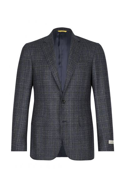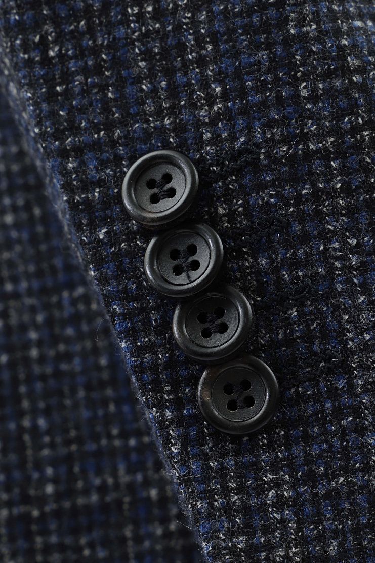Пиджак в мелкую клетку из шерстяной ткани с небольшим ворсом. Слегка приталенная модель на подкладке.