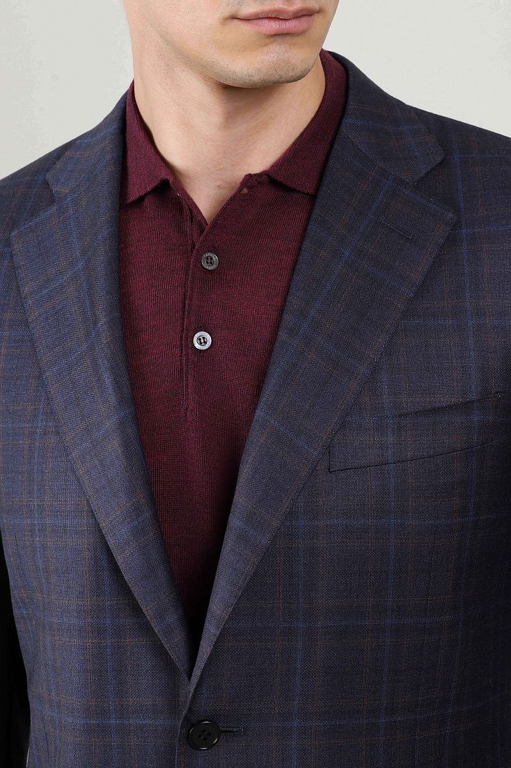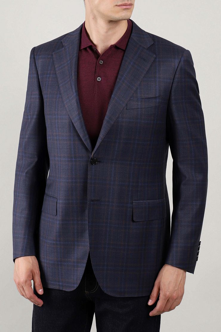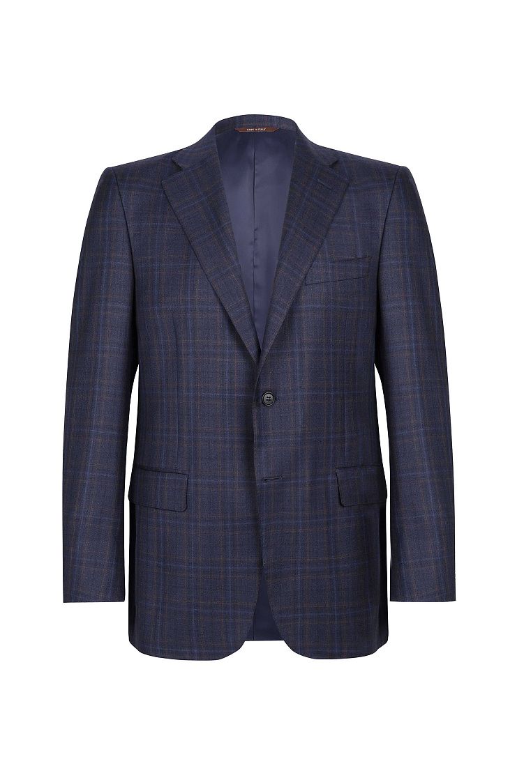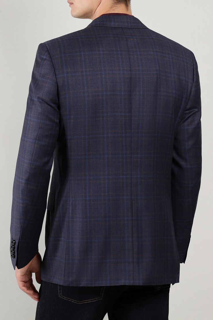 Пиджак в коричнево-голубую клетку превосходно подойдет для повседневного элегантного образа. Модель прямого кроя на подкладке из шелковистой ткани купро.