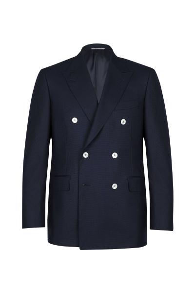 Двубортный пиджак отлично подойдет для неформального торжественного образа. Модель прямого кроя на подкладке с акцентными белыми пуговицами и заостренными лацканами.