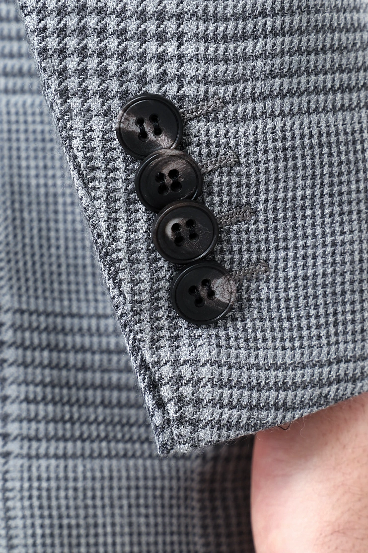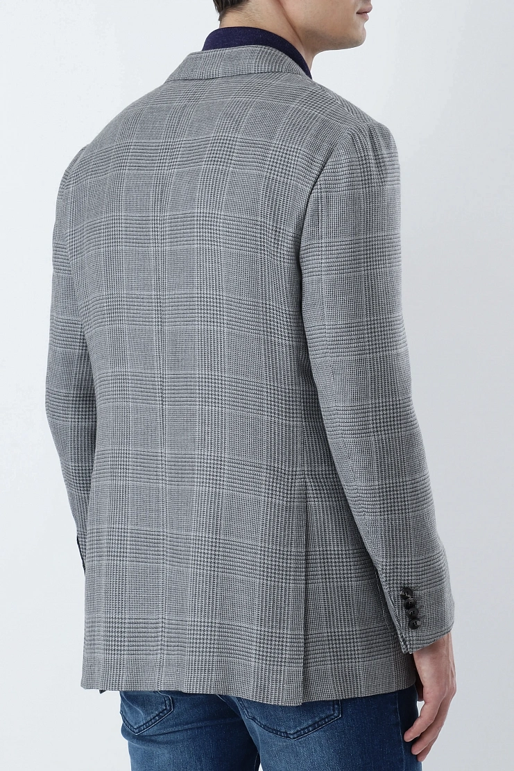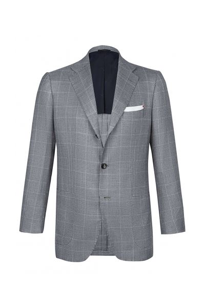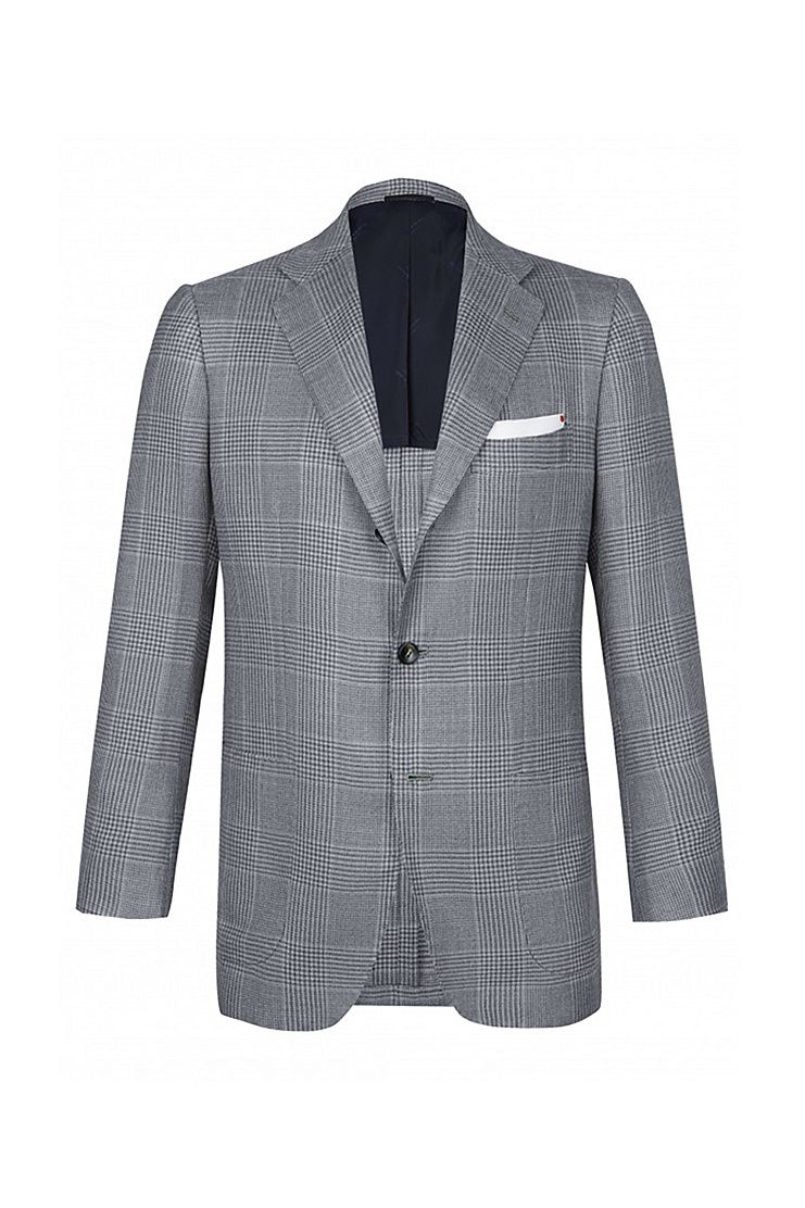 Пиджак в клетку "Принц Уэльский" из кашемира и шелка великолепно подойдет для повседневного образа в стиле smart casual. Слегка приталенная модель на подкладке с боковыми накладными карманами и нагрудным платком.