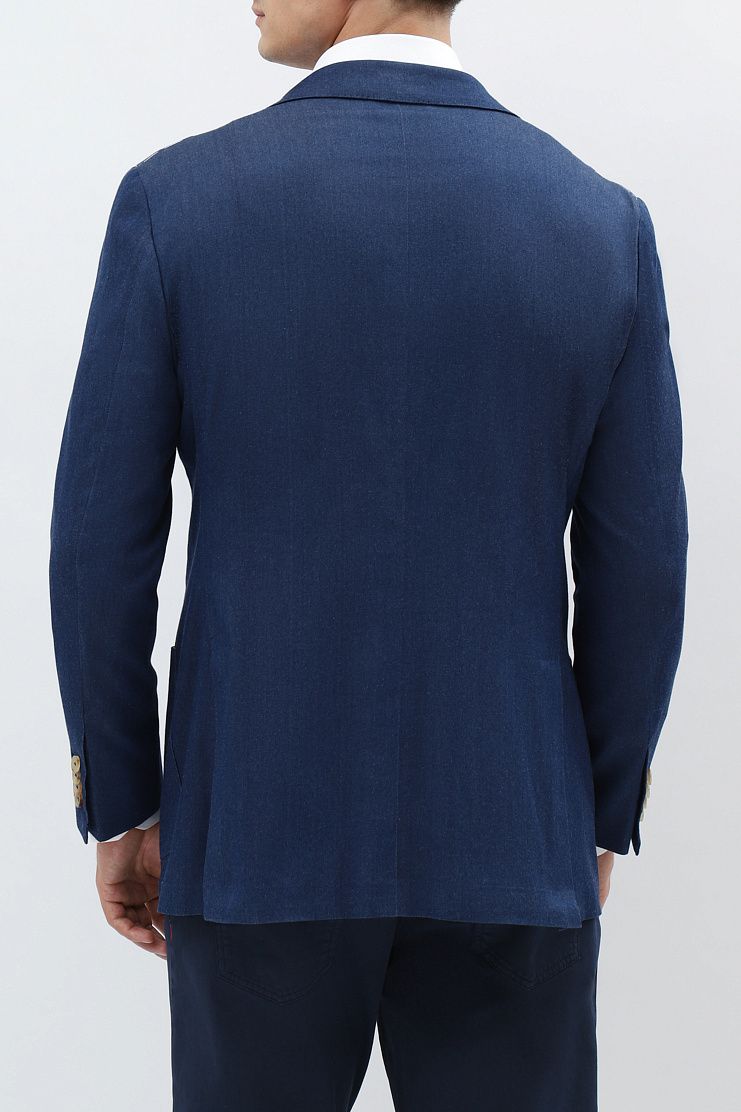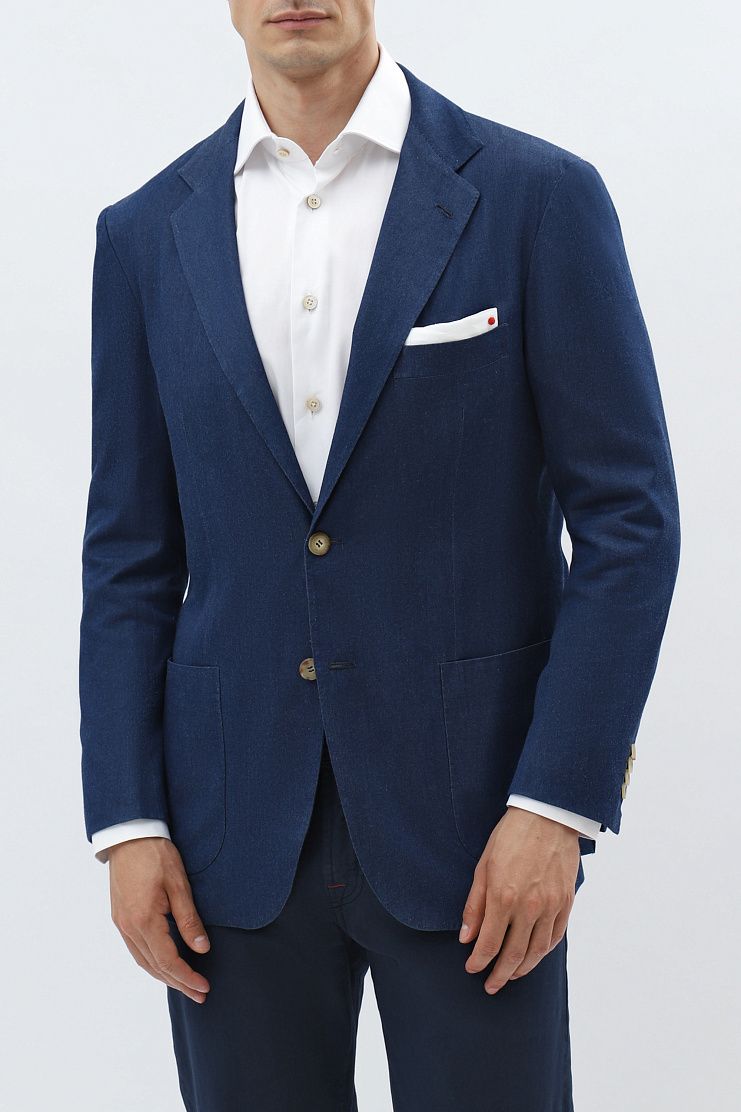 Джинсовый пиджак блестяще соединил в себе атрибуты повседневного стиля и традиционную элегантность. Приталенная модель на полуподкладке с боковыми накладными карманами и белым нагрудным платком с вышивкой, придающим образу особенную изысканность.
