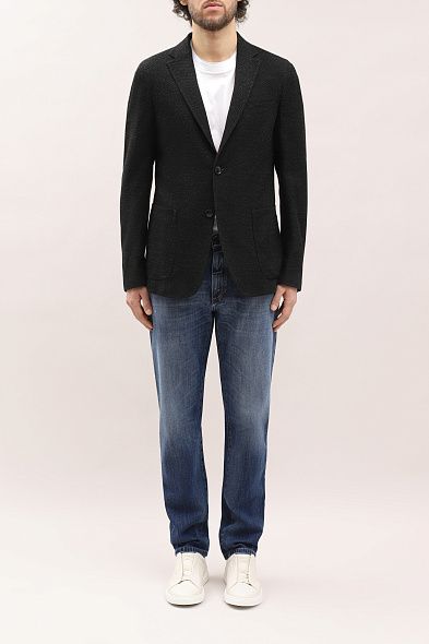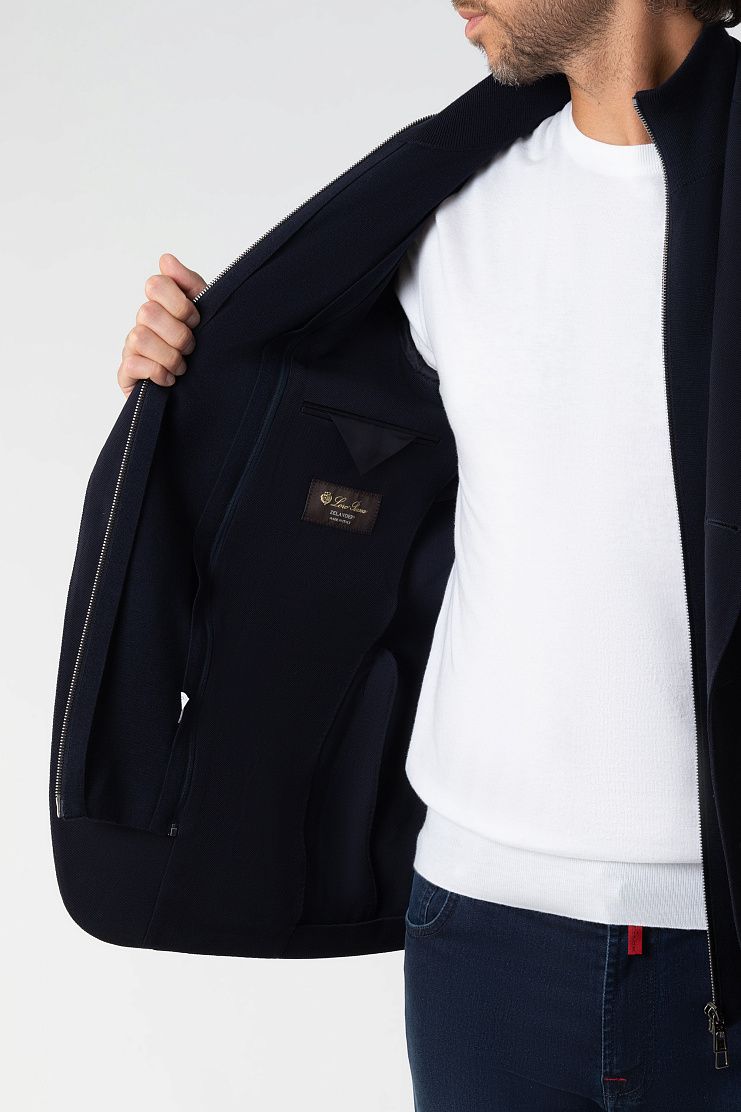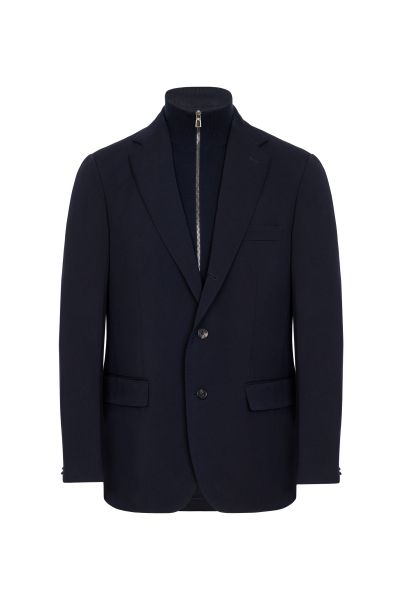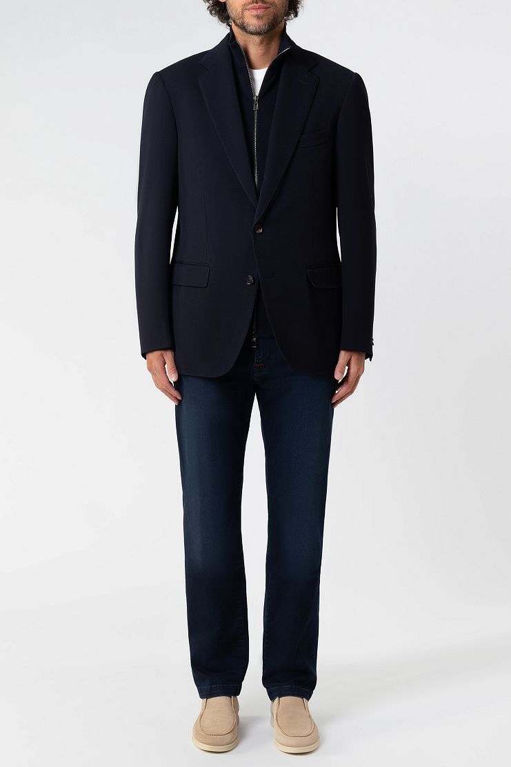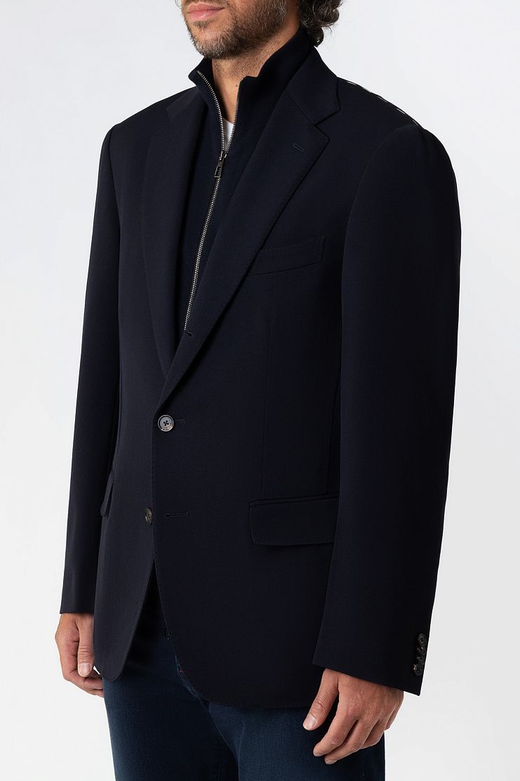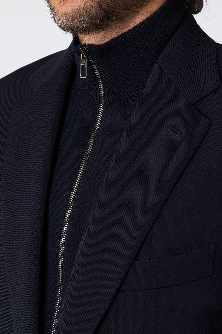 Однобортный приталенный пиджак New Order сшили из мягкой фирменной шерсти Zealander® High Tenacity Wool, которая великолепно сохраняет тепло и отличается особой прочностью. Модель с тремя карманами дополнена съемным трикотажным нагрудником на молнии и застегивается на роговые пуговицы.