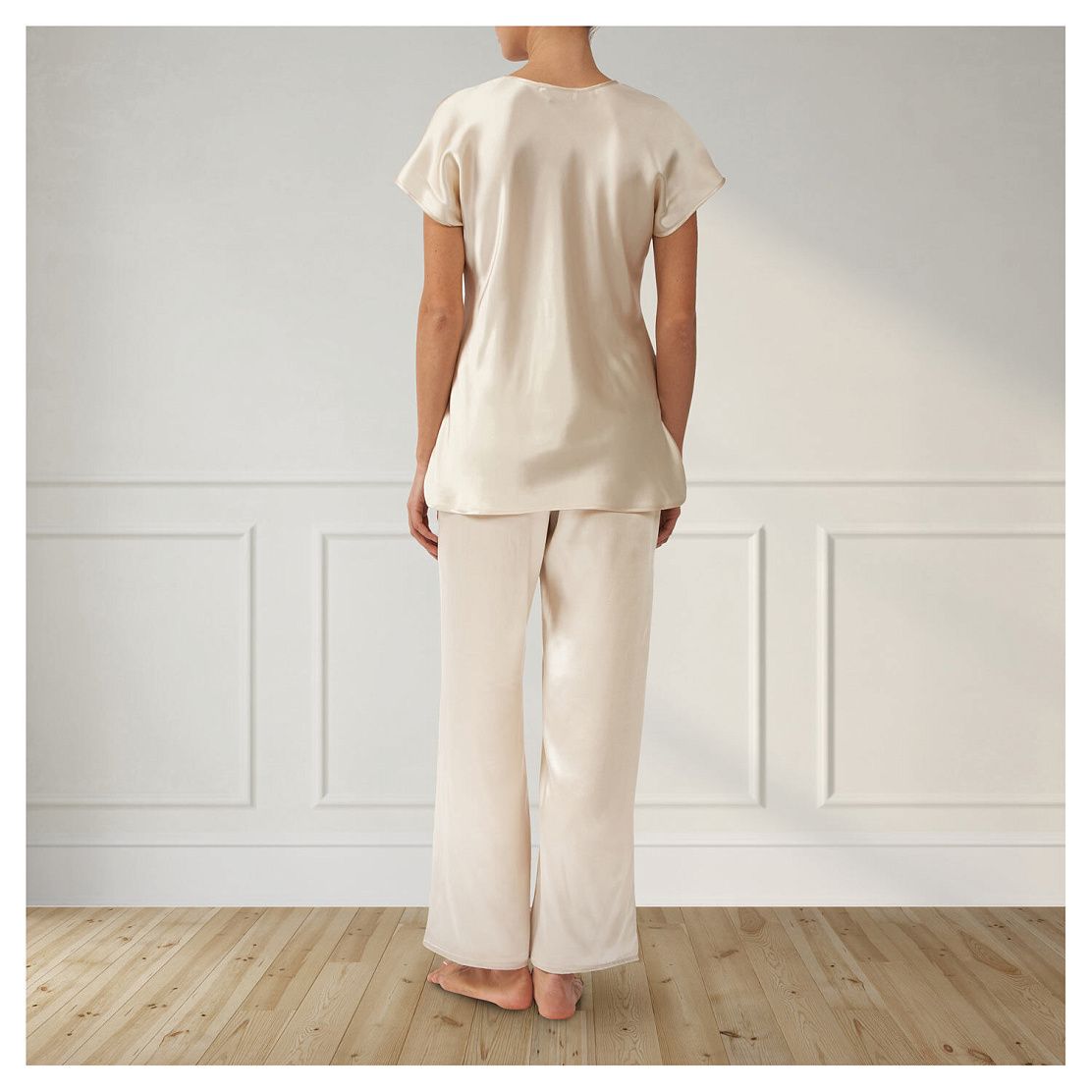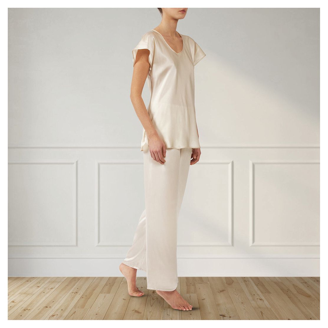 Пижамный комплект Bright, выполненный из блестящего нежного шелка, подарит приятные ощущения во время отдыха и сна. Шелковые изделия отличаются долговечностью, отличной терморегуляцией и не вызывают аллергии.